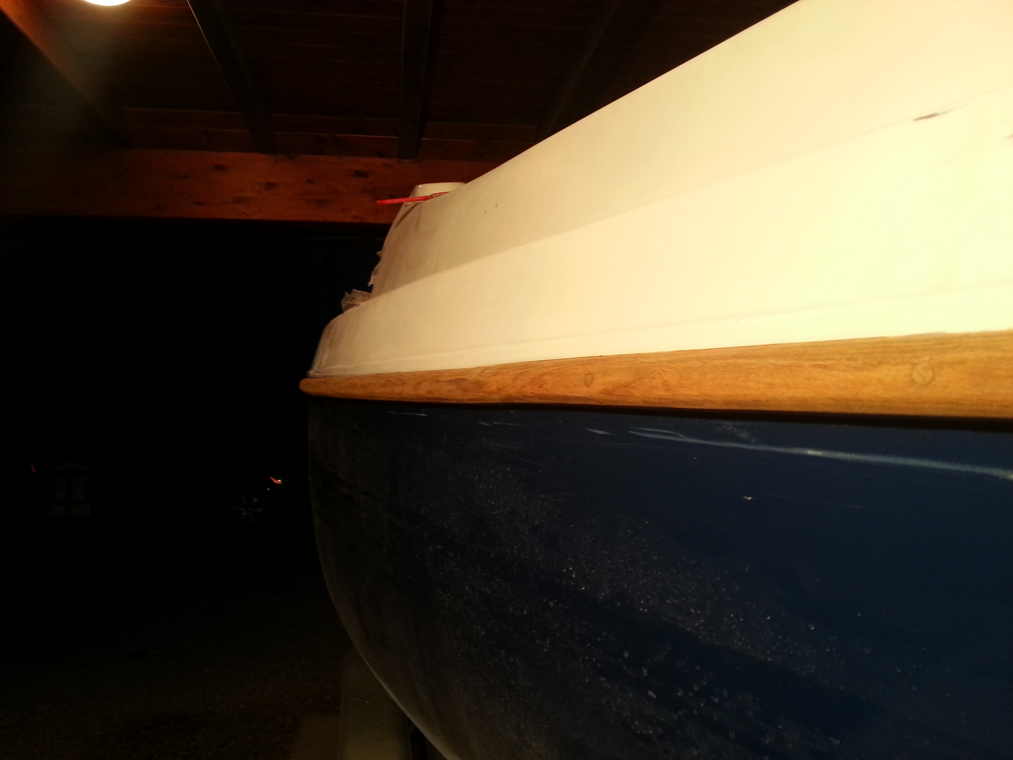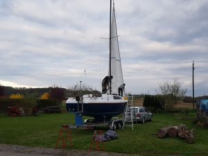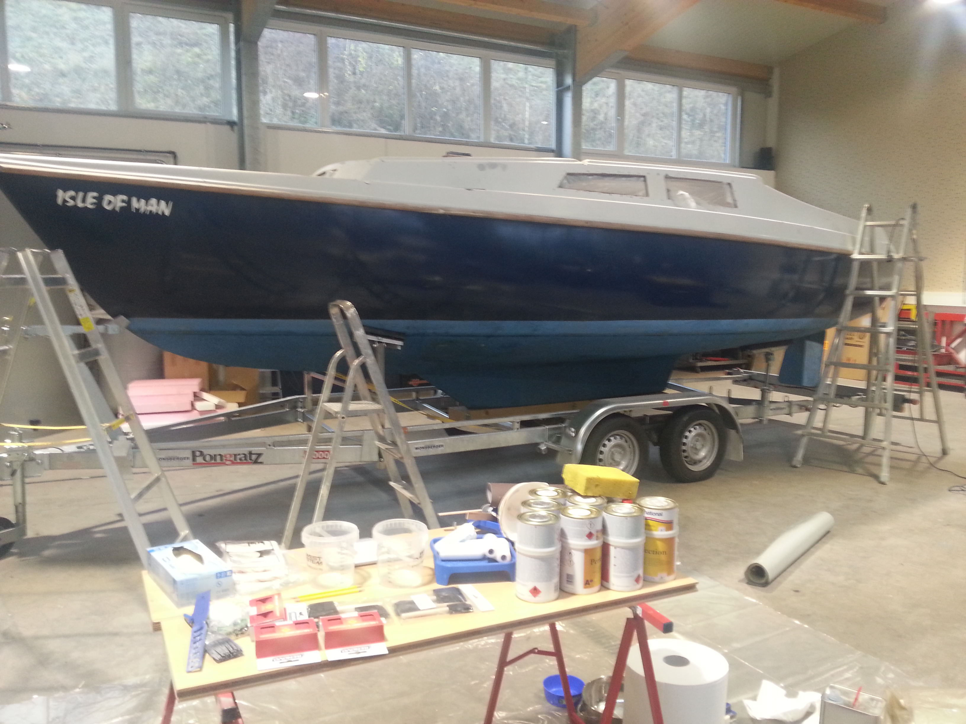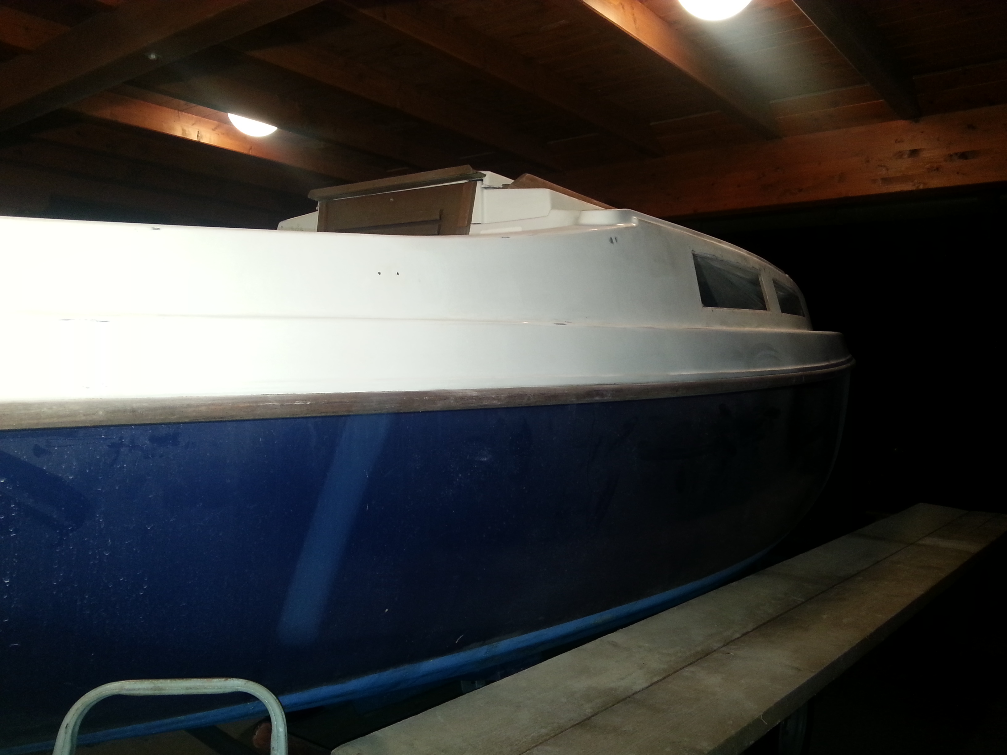 Nachdem wir uns in einem nahegelegenen Hafen um einen Trailer umgesehen haben, ging es dann wieder weiter an die Arbeit. Ich habe die gesamte linke Scheuerleiste fertig mit Holzspachtel repariert und ebenfalls geschliffen. Das muss natürlich sein bevor das erste mal lackiert wird – da ein schleifen im nachhinein den Lack ev. beschädigen würde.