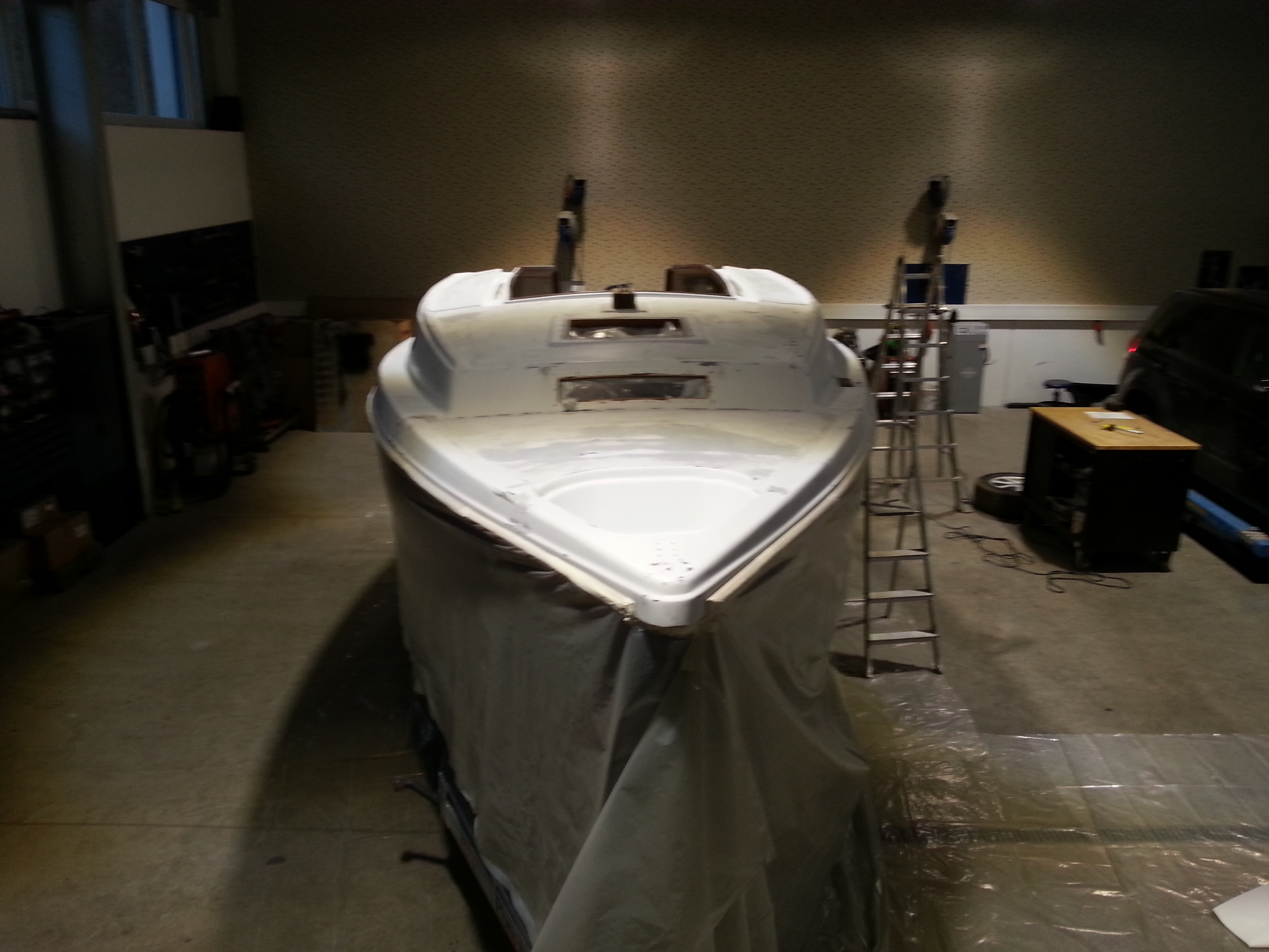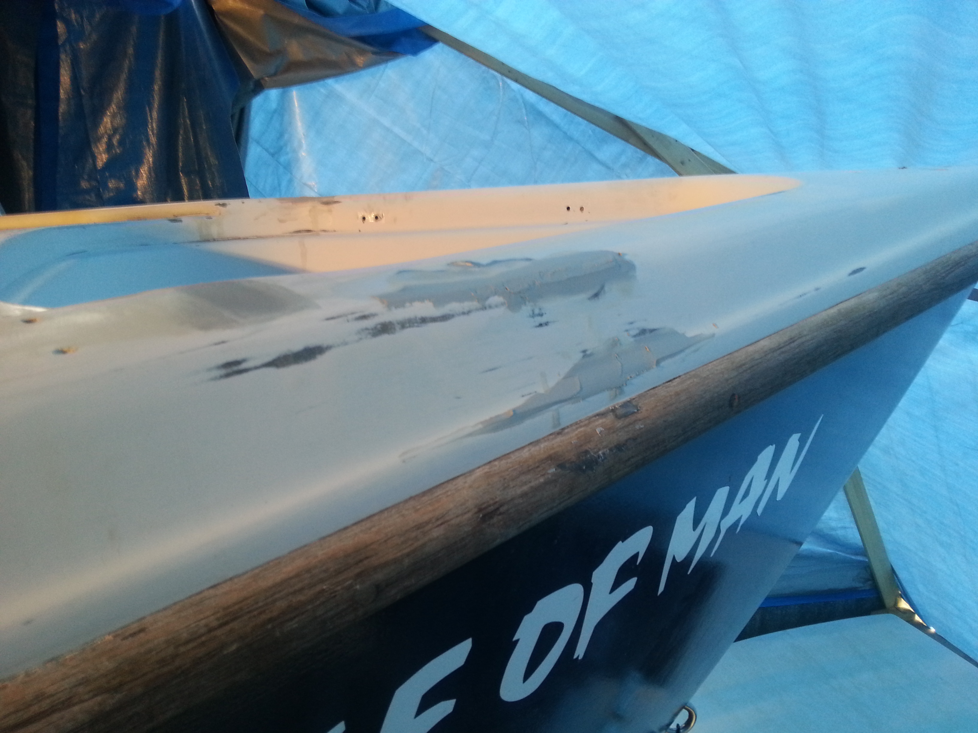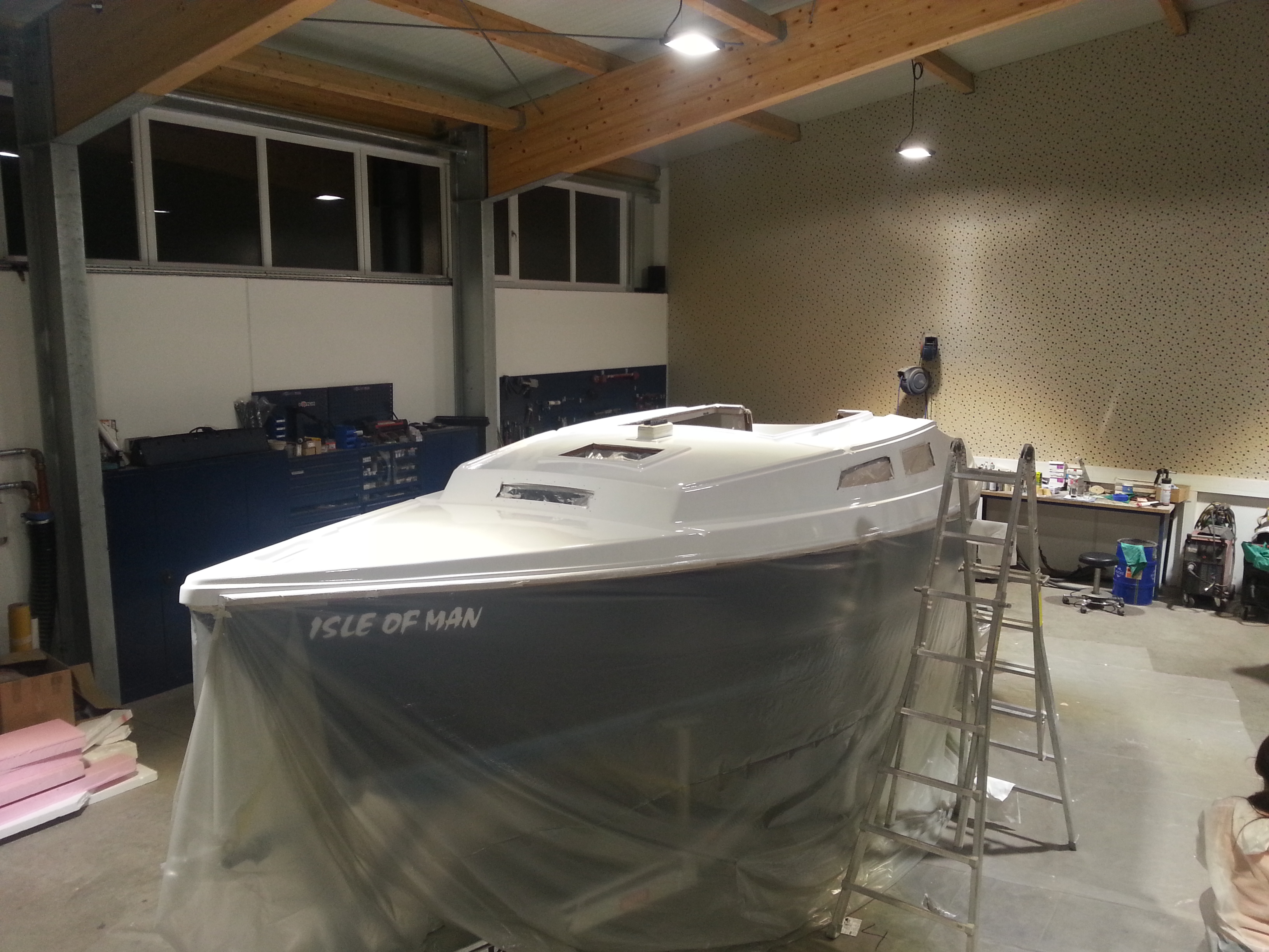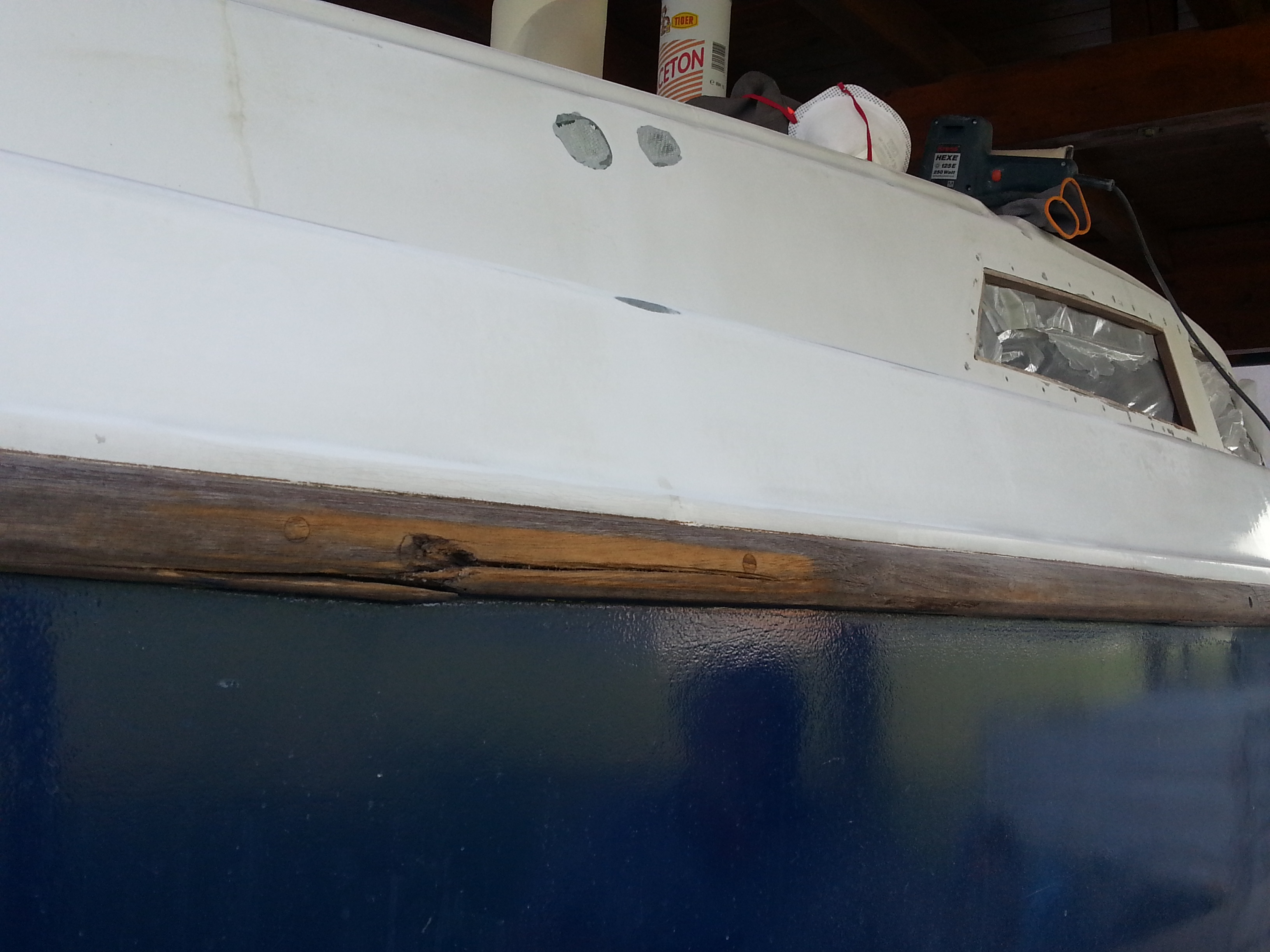 Nachdem wir uns in einem nahegelegenen Hafen um einen Trailer umgesehen haben, ging es dann wieder weiter an die Arbeit. Ich habe die gesamte linke Scheuerleiste fertig mit Holzspachtel repariert und ebenfalls geschliffen. Das muss natürlich sein bevor das erste mal lackiert wird – da ein schleifen im nachhinein den Lack ev. beschädigen würde.