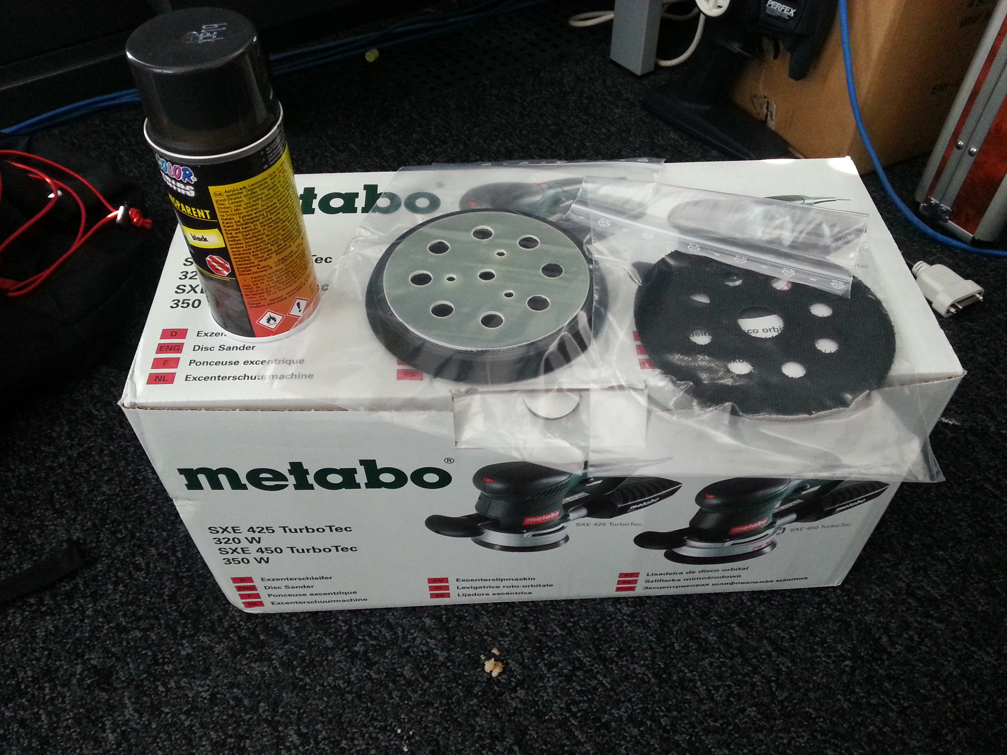 Und wieder wird geschliffen was das Zeug hält. Ich habe das Zubehör für den Metabo-Excenter mitgenommen, Schlauchadapter angesteckt und die ersten Tests gemacht, Fazit: ein Traum.