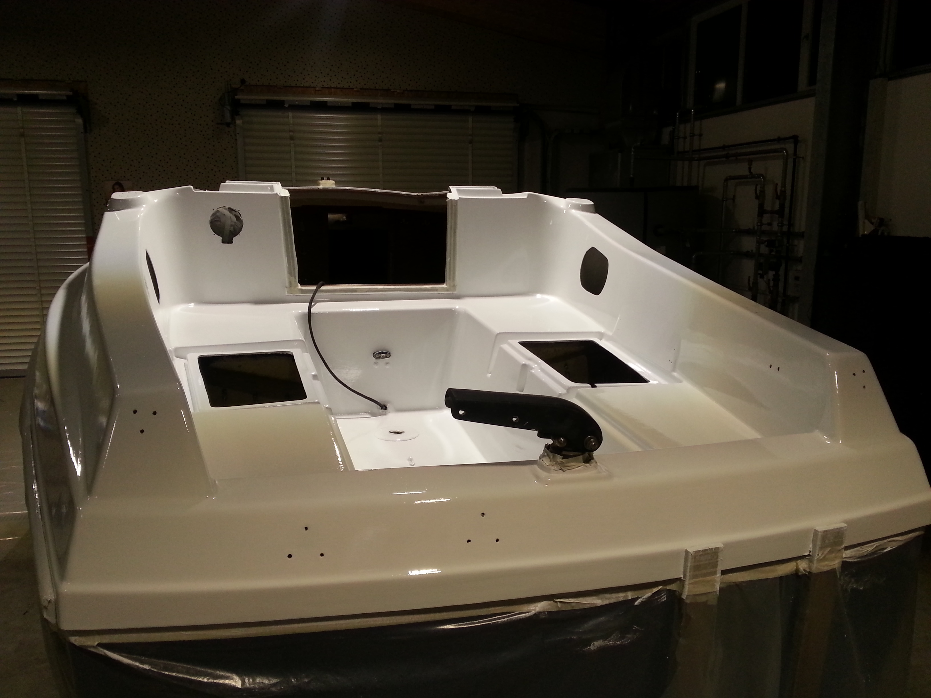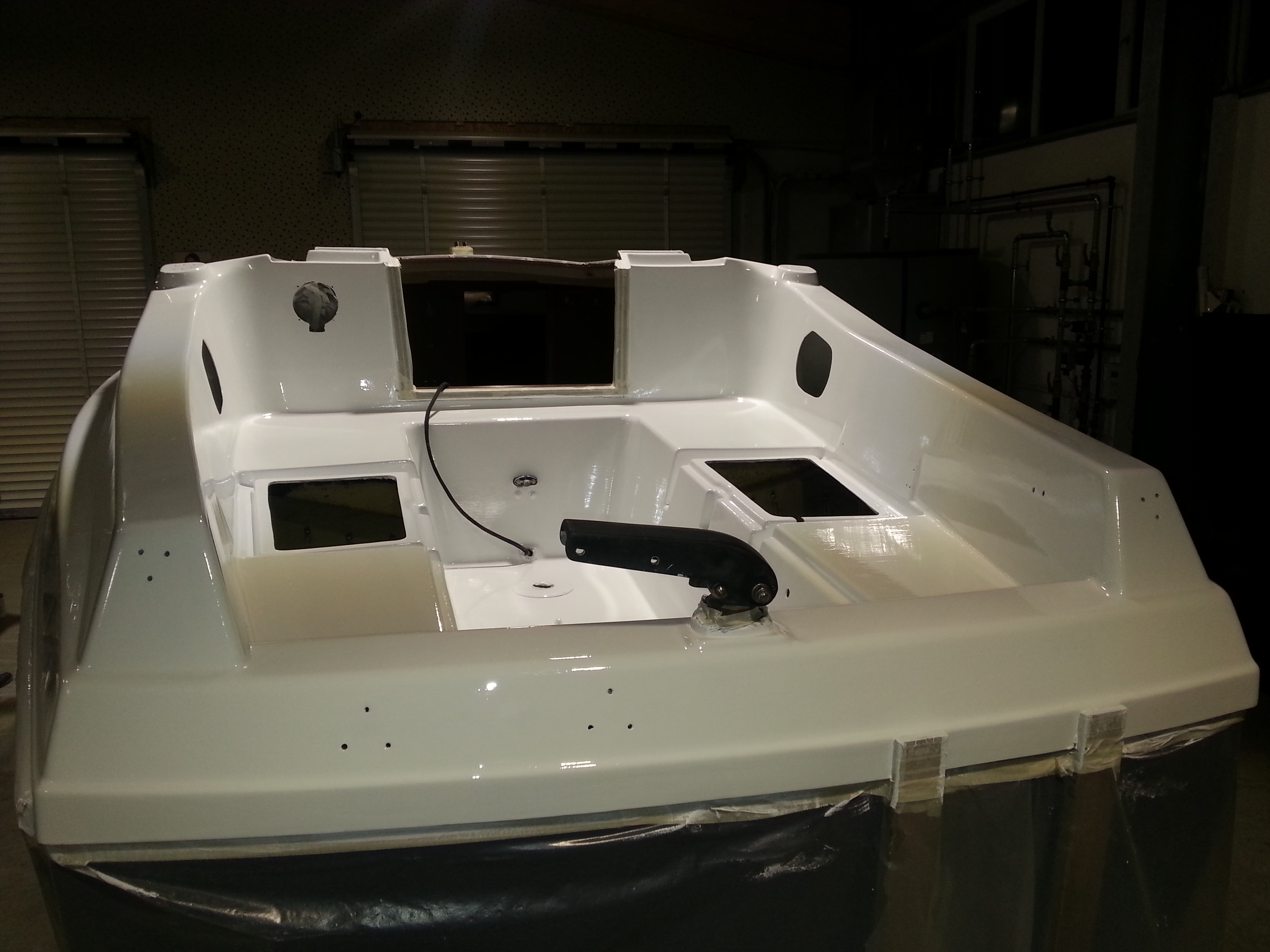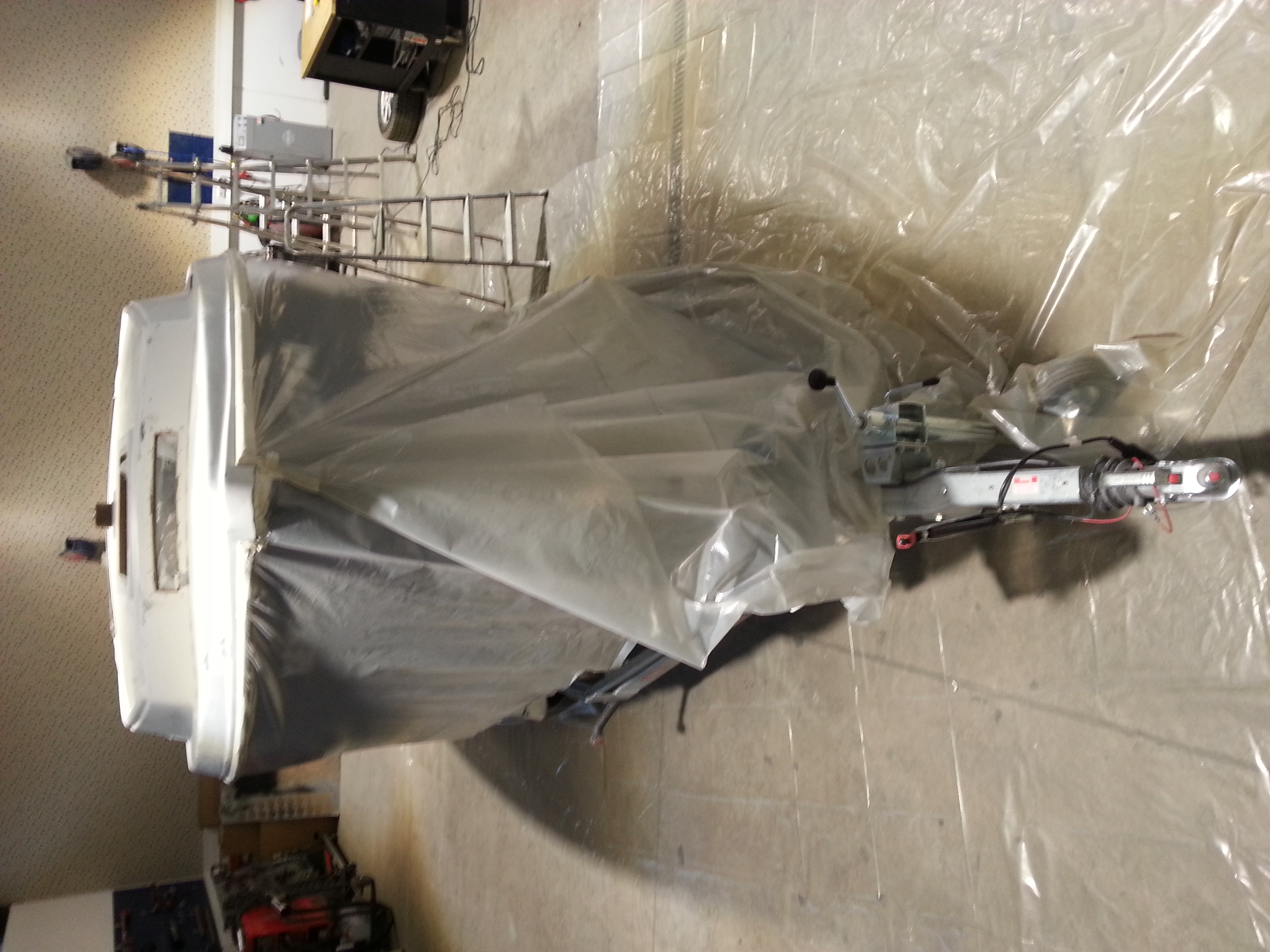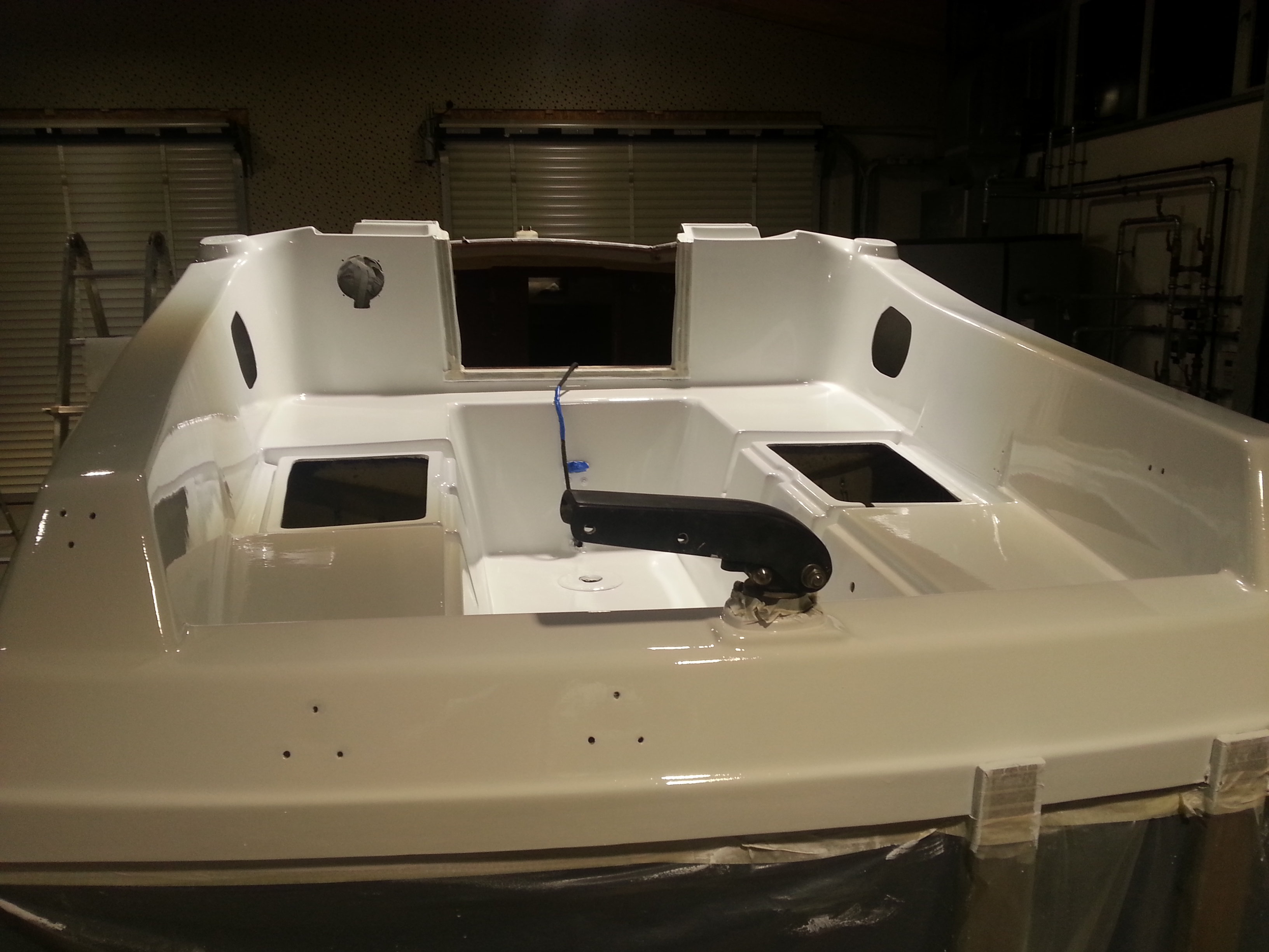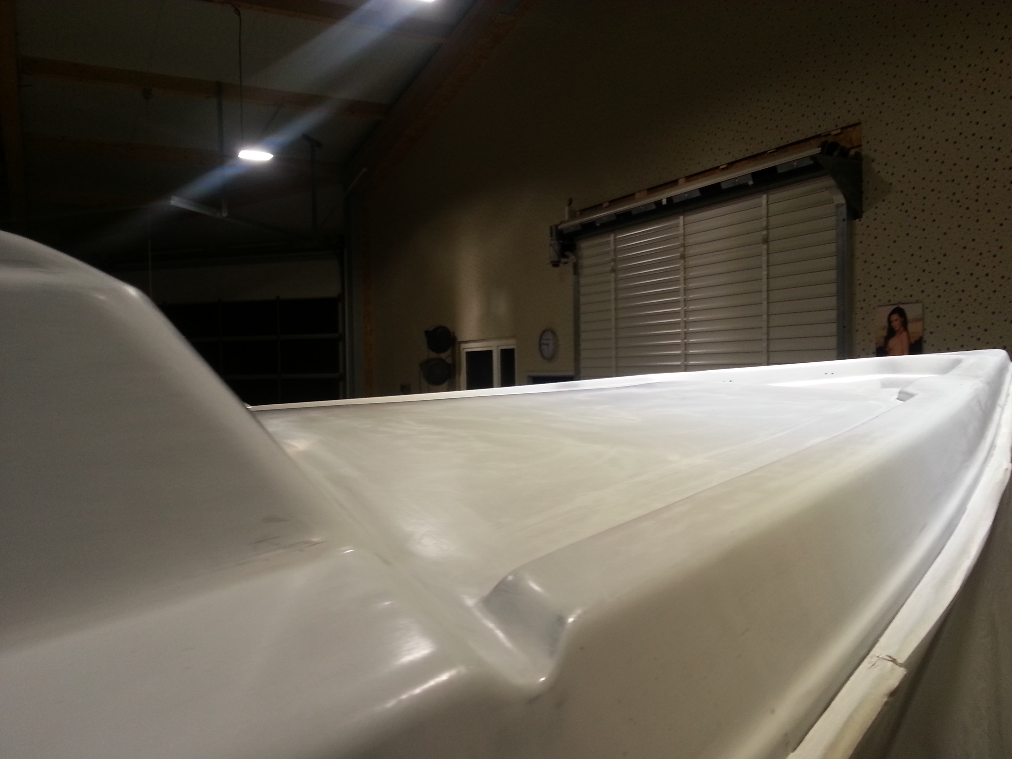 Heute habe ich weitere Schadstellen mit der Flex freigelegt und den Motorschachtdeckel innen mit 1er Schicht Glasfilamentgewebe laminiert