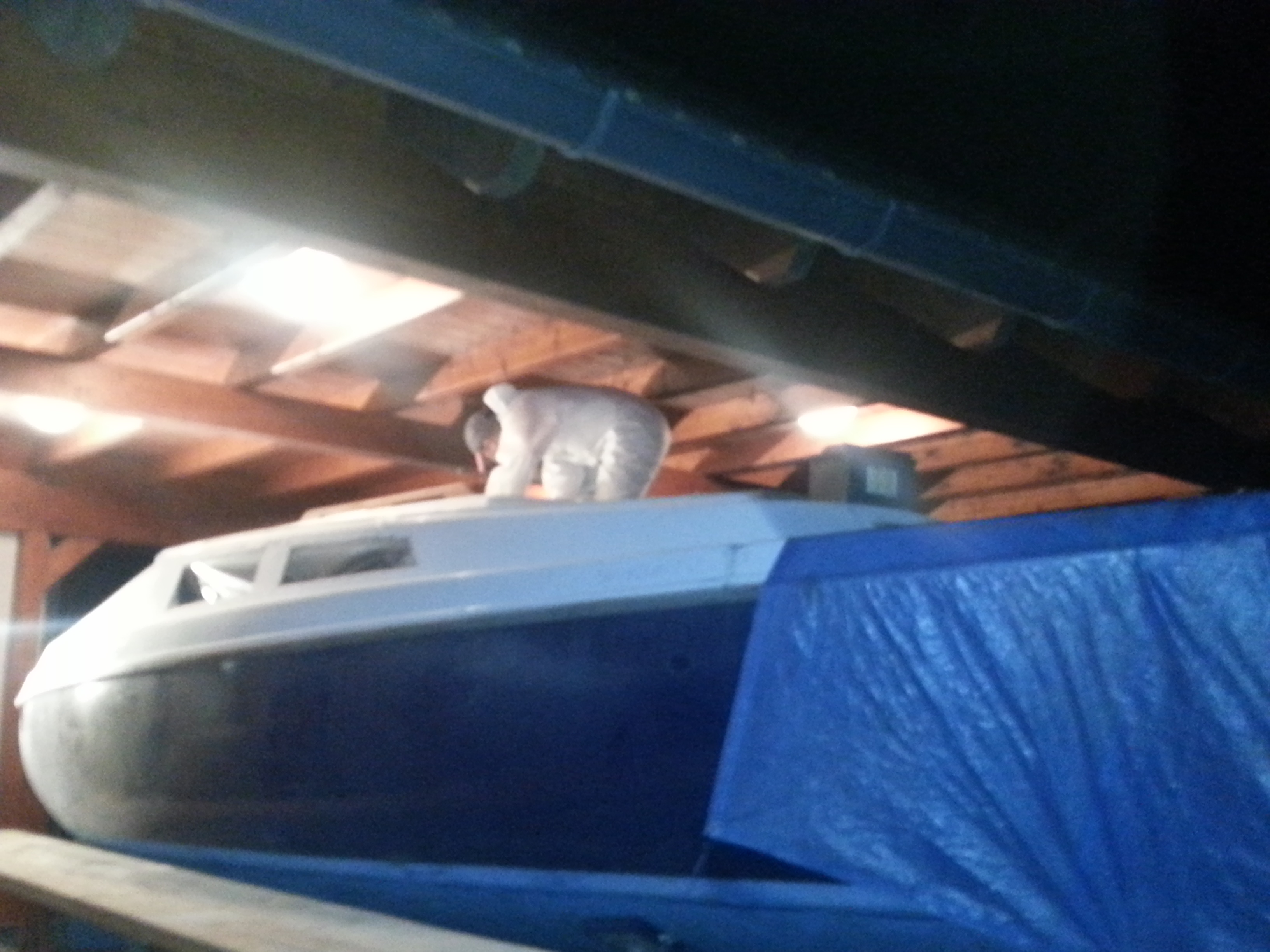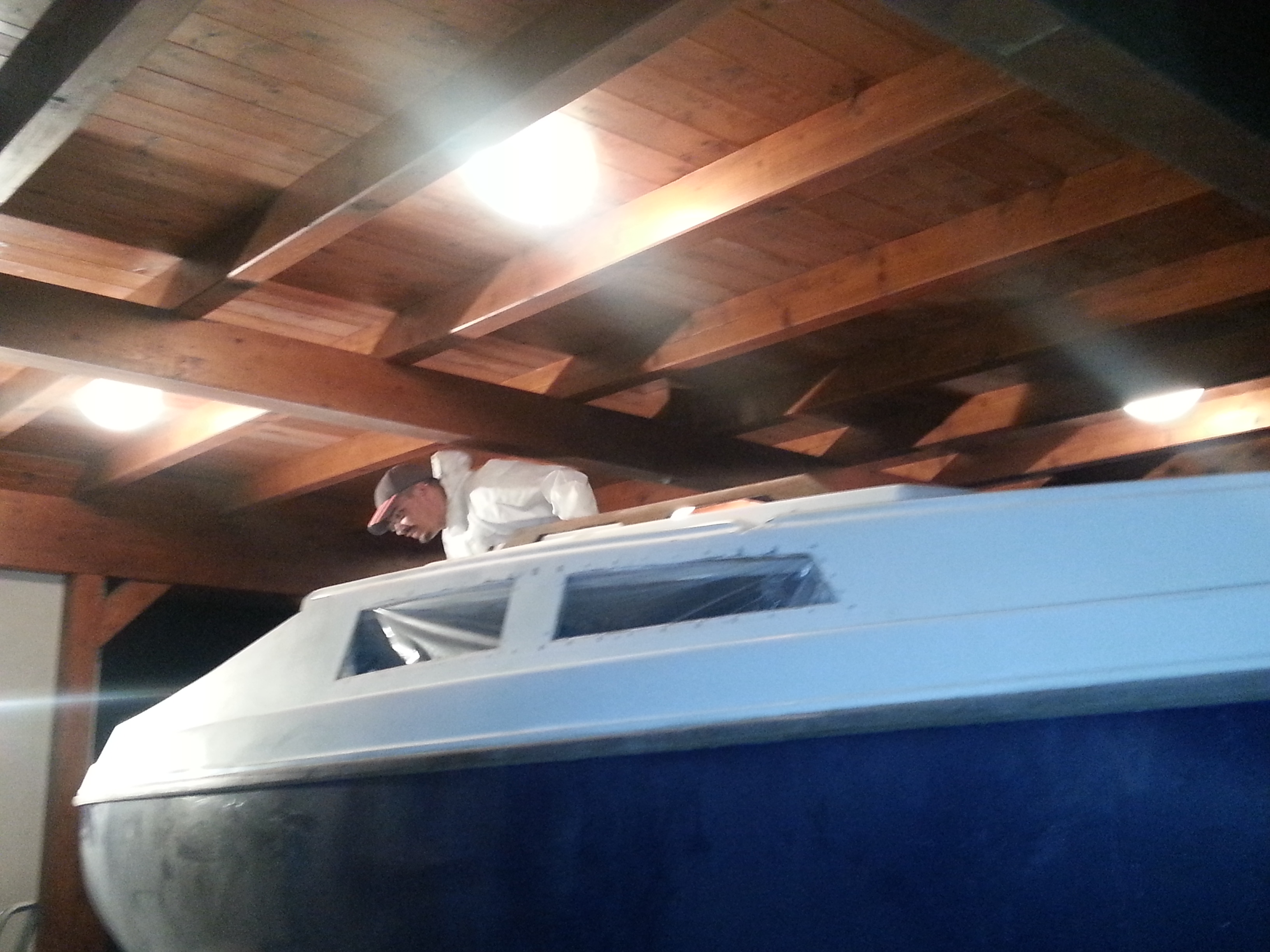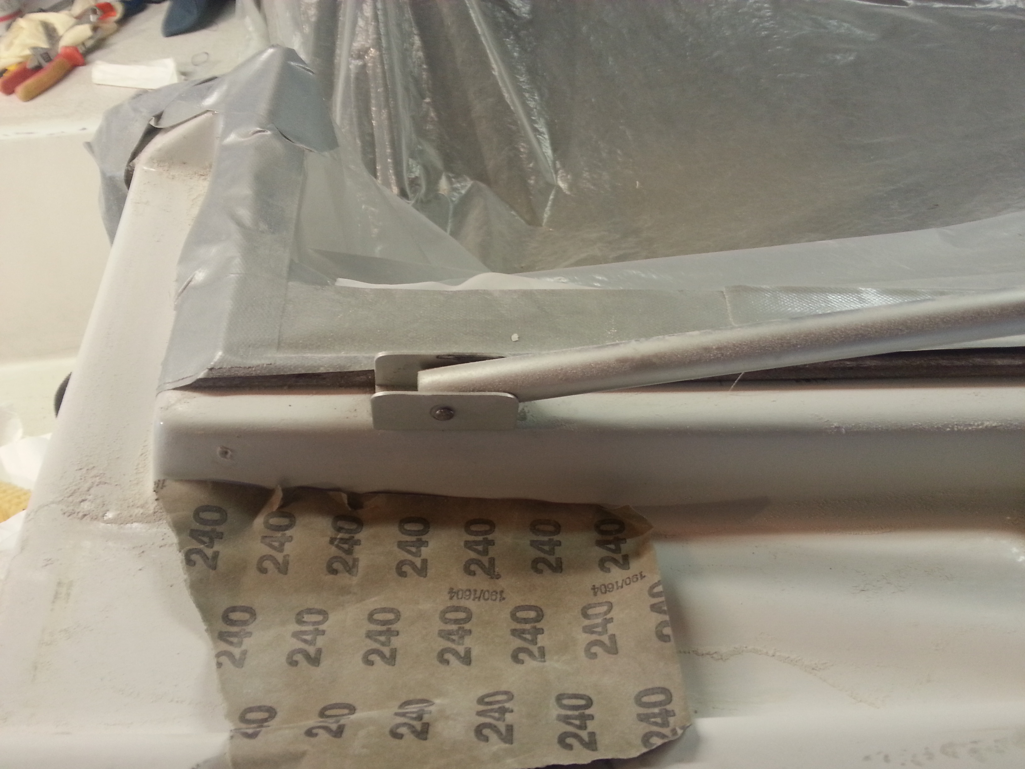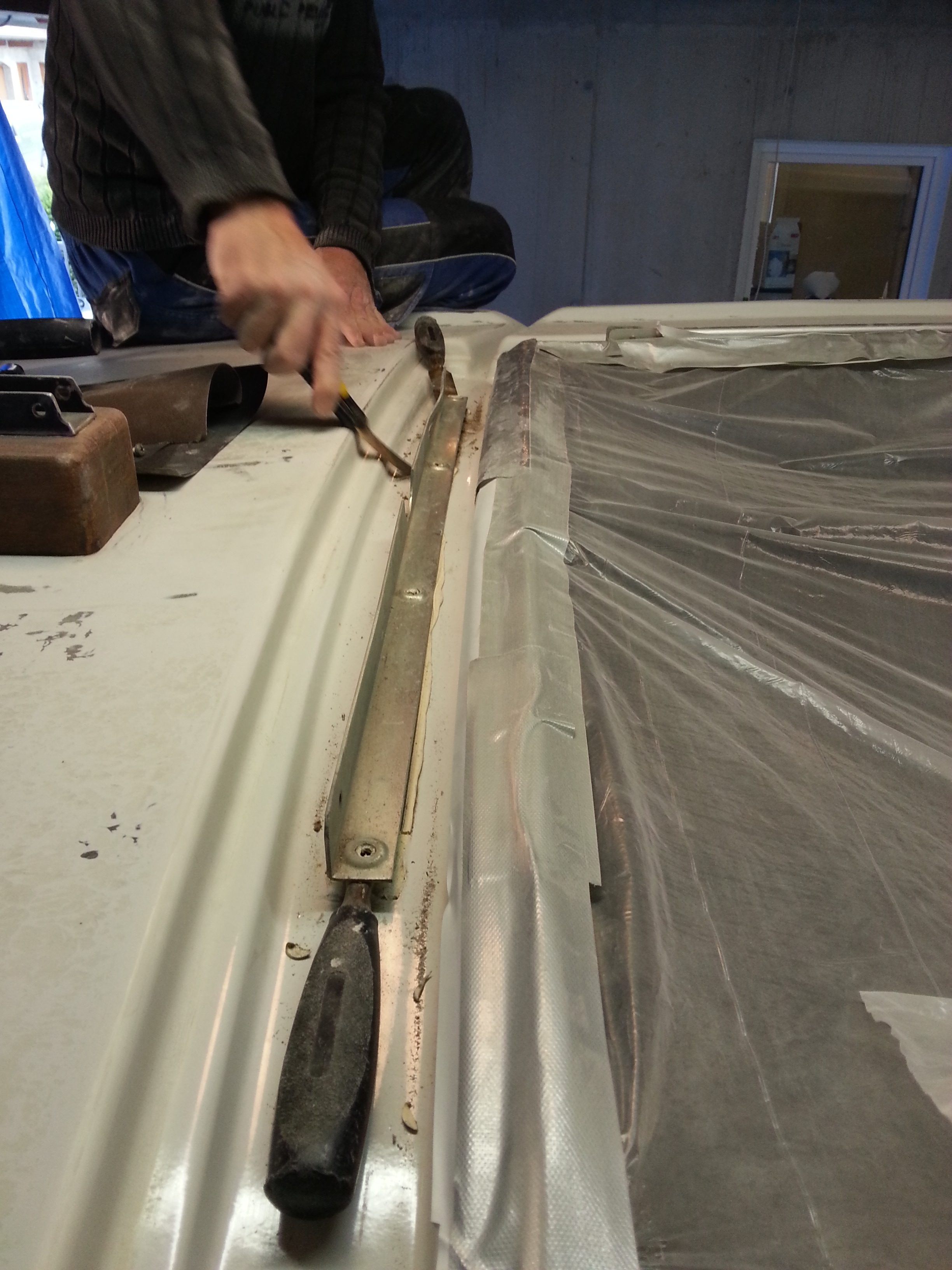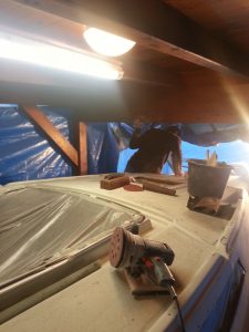 Außerdem haben wir das Hubdach abgebaut (was notwendig ist um an Deck alles schleifen zu können). Nähere Informationen dazu habe ich in der Kategorie “Phase 2 – zerlegen” hinterlassen.