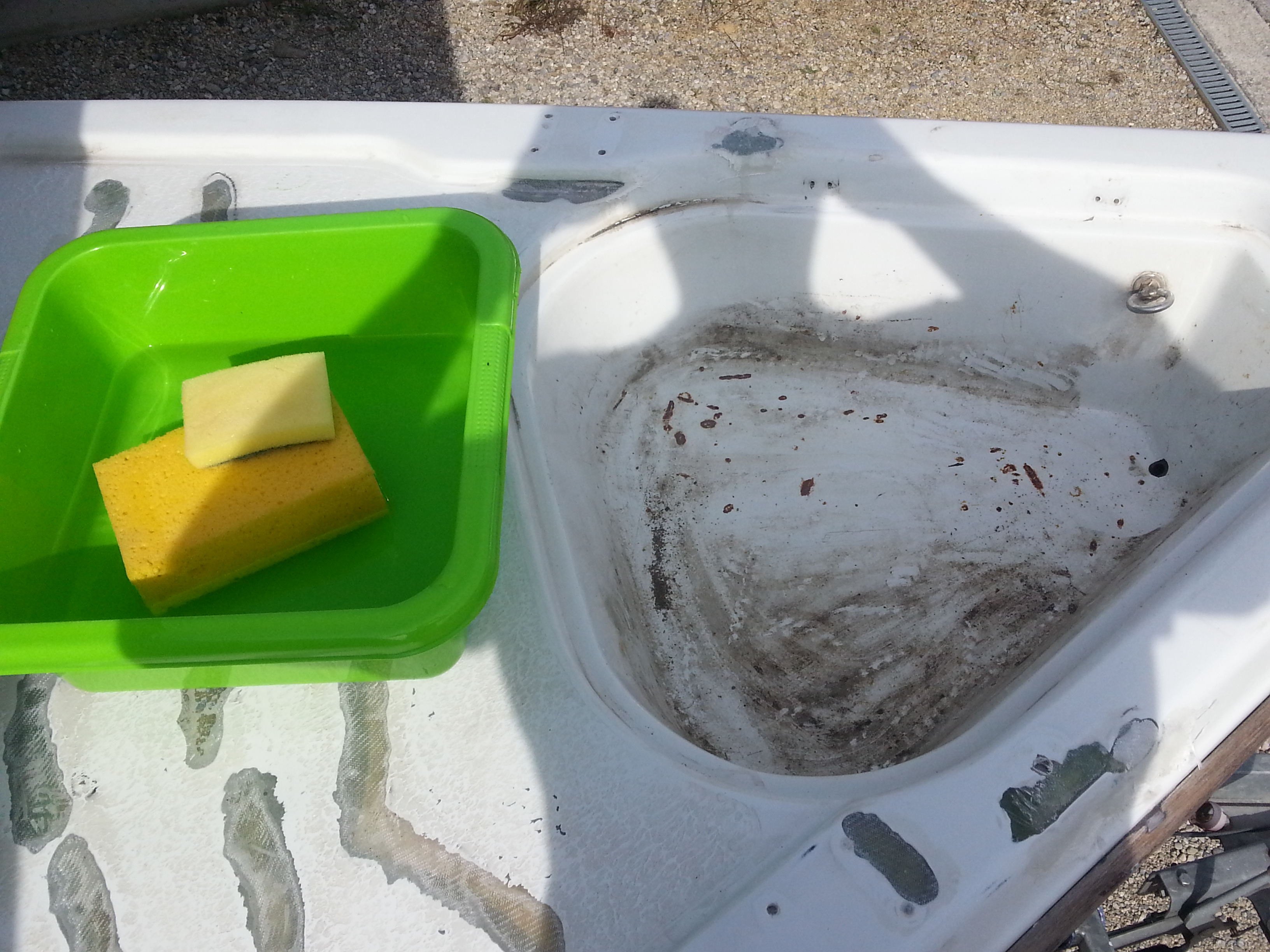 So, 9.10.2016, 12:30 – 20:00, ~7h: schleifen, spachteln