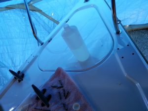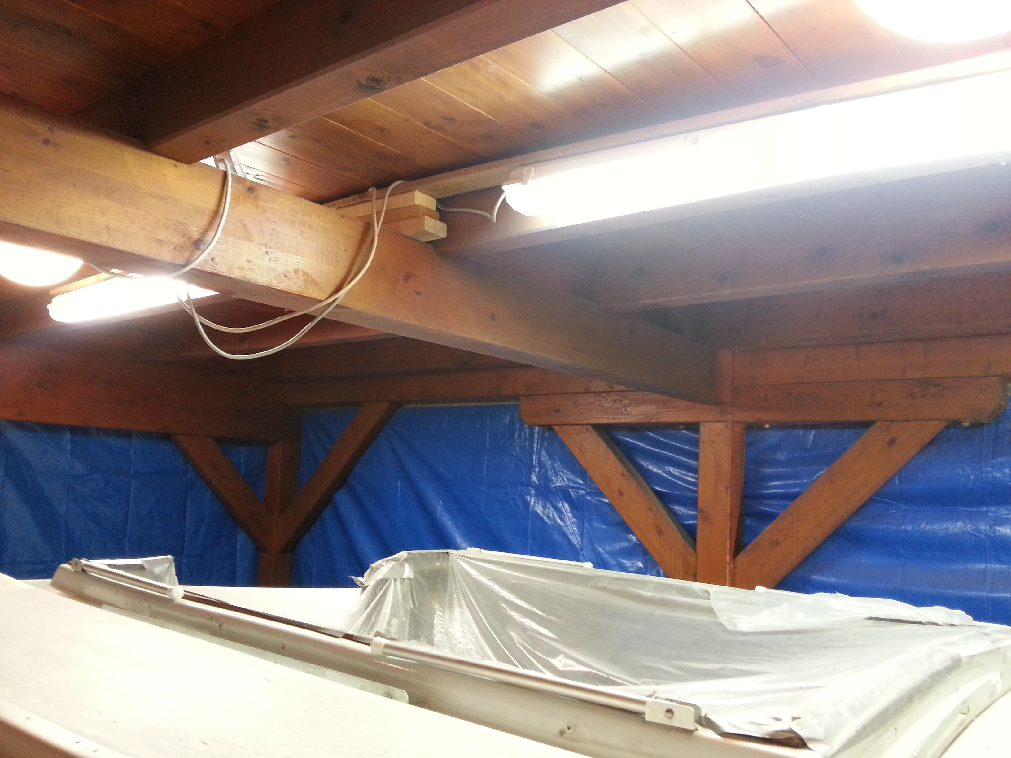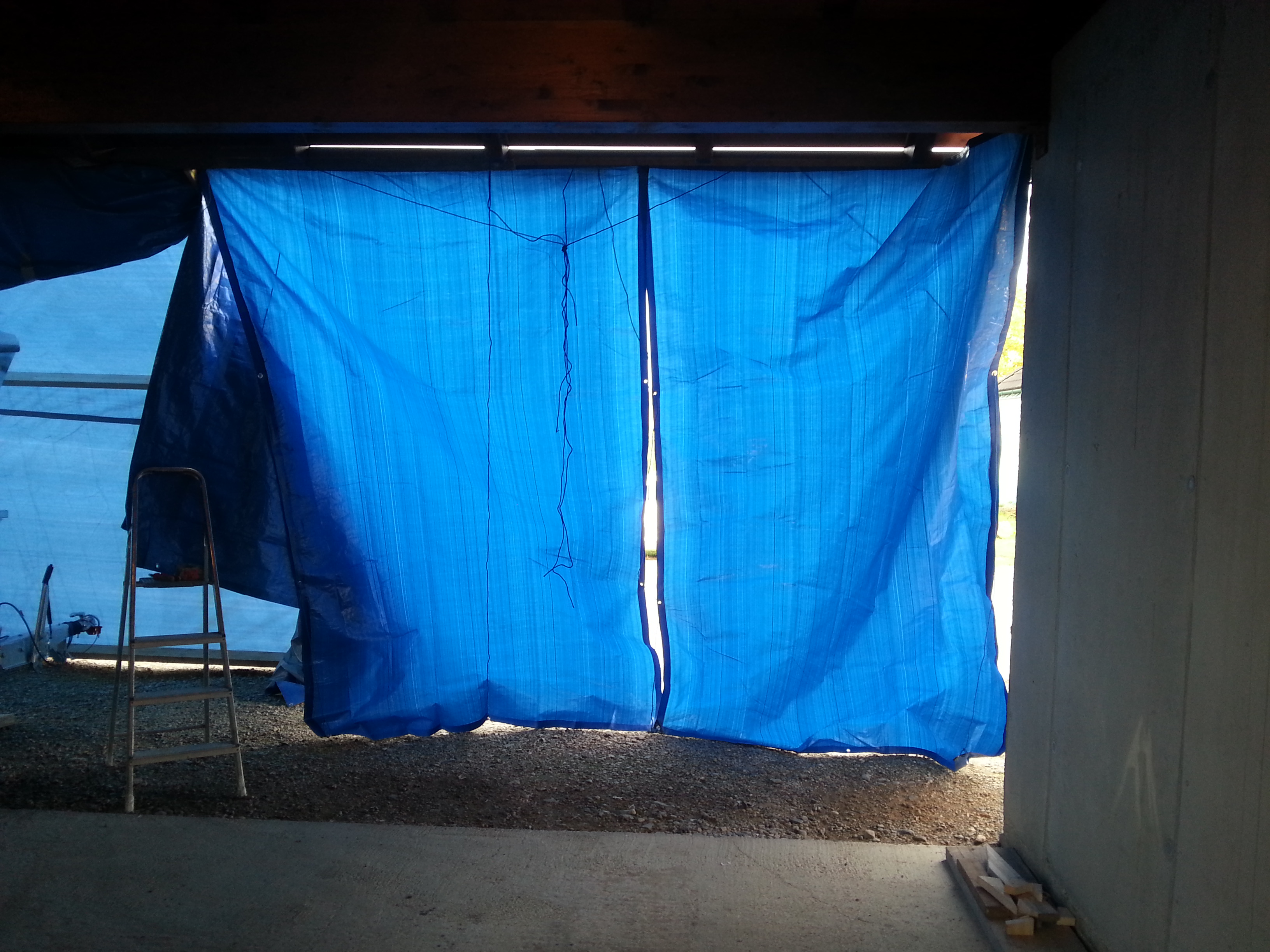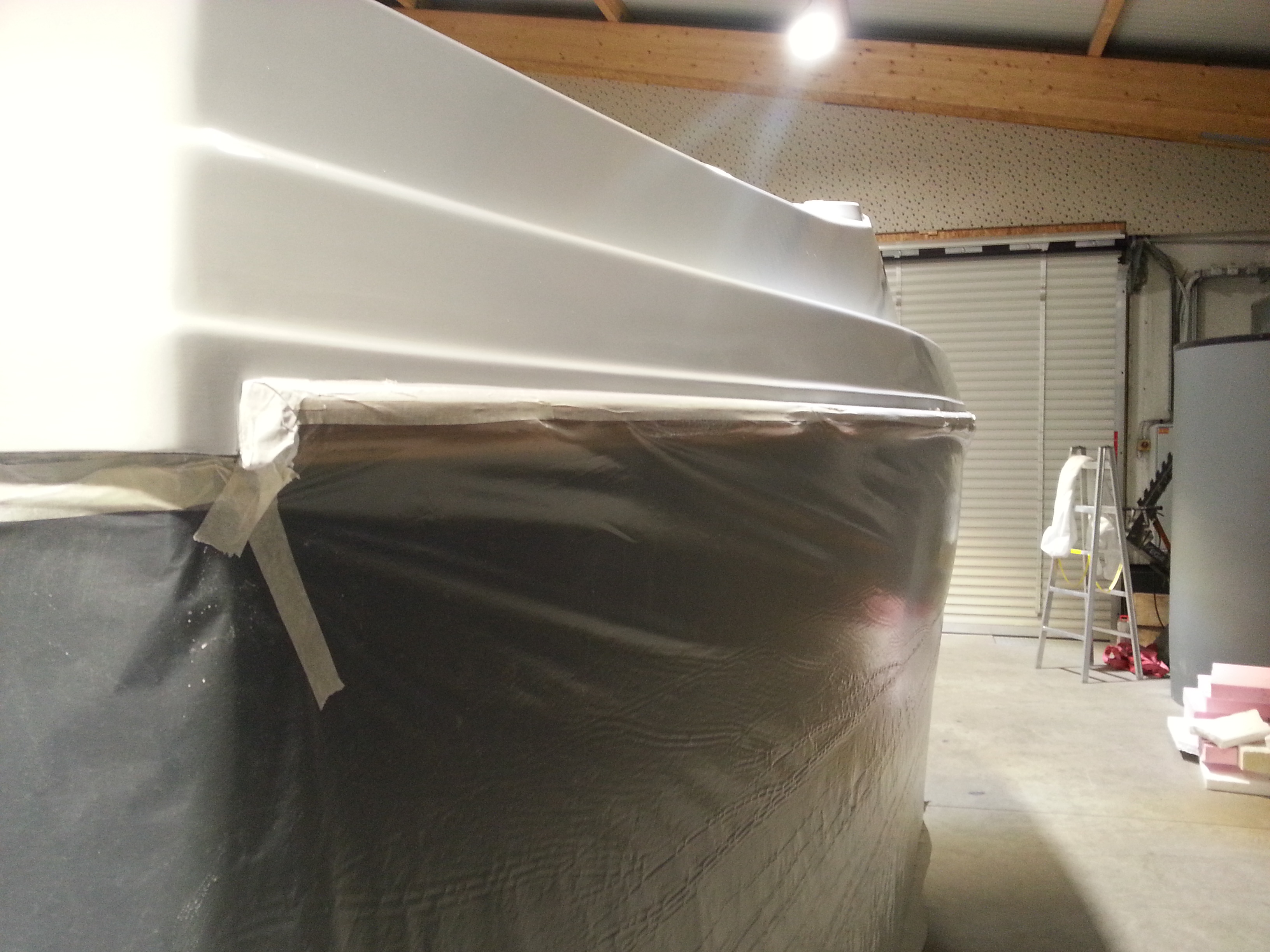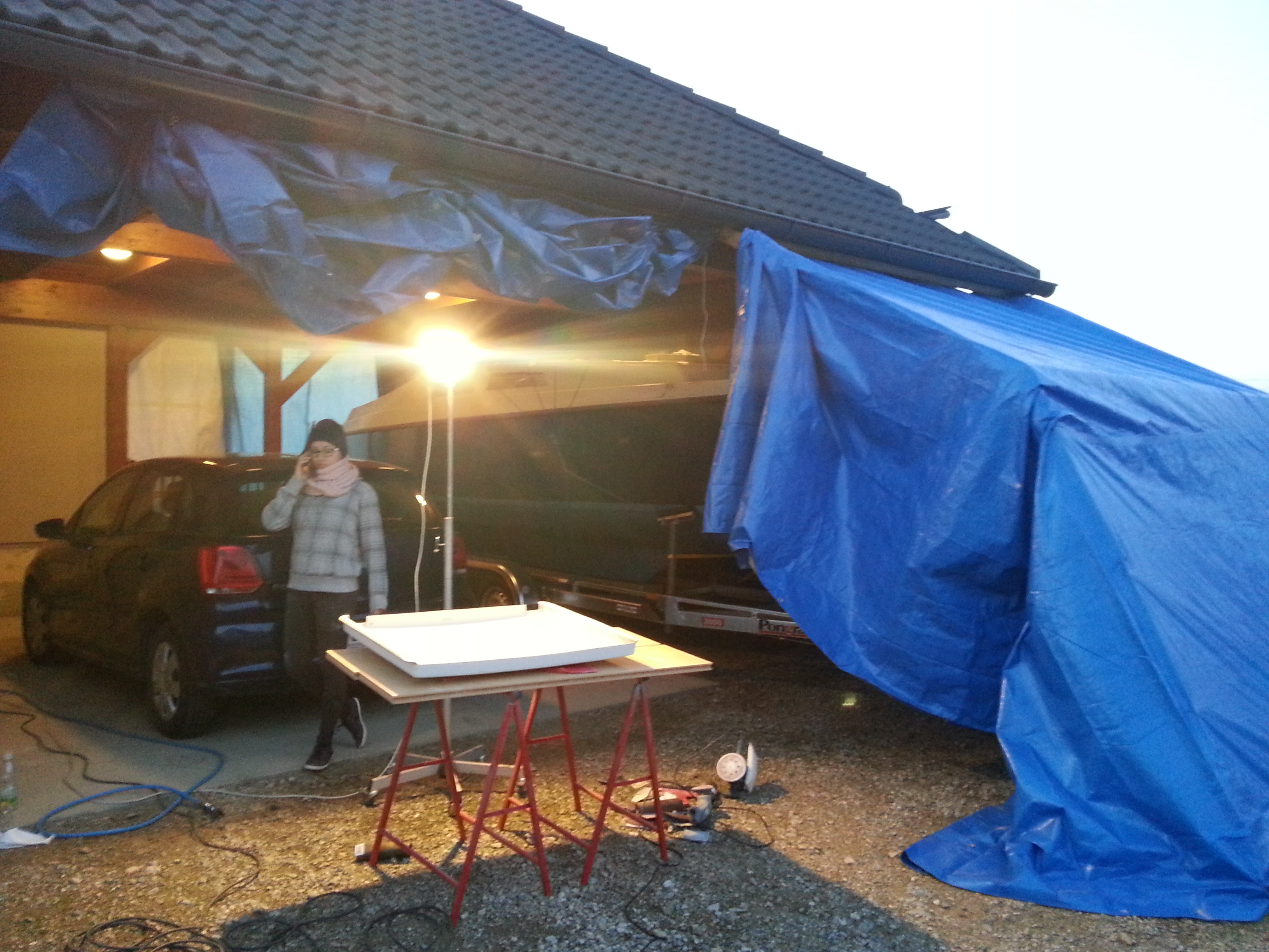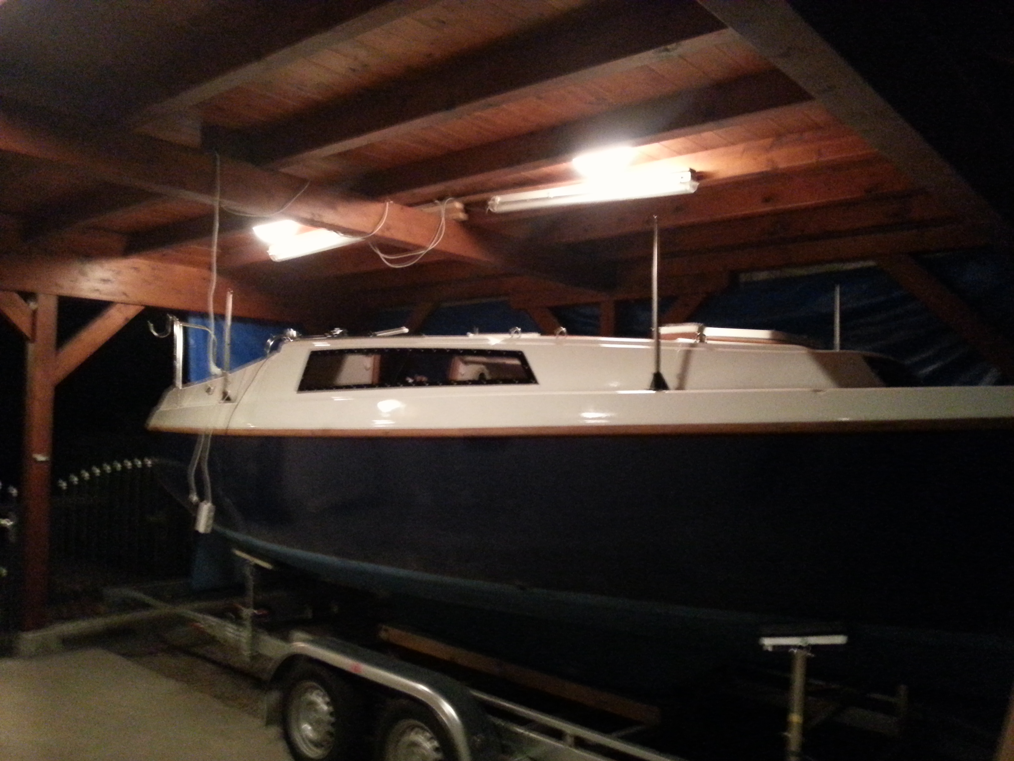 Heute haben wir das CarPort für den Winter fest gemacht und auf den Außenseiten Abdeckplanen montiert, so dass kalte Luftzüge verhindert werden und den Hänger in das andere Eck umgestellt. Und natürlich wurde wieder geschliffen, gespachtelt und alle Kisten und Deckel überarbeitet. Es hat 8° – toll.