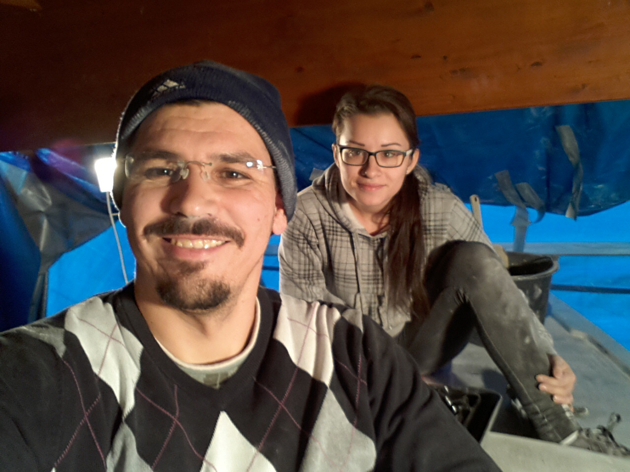 Ja, was soll es sonst anderes sein außer schleifen? Weil schleifen nach einigen Stunden relativ schnell langweilig wird, haben wir zwischenzeitlich ein paar kleine Arbeiten erledigt wie zb das reparieren der Holzscheuerleiste die an einer Stelle gebrochen ist: