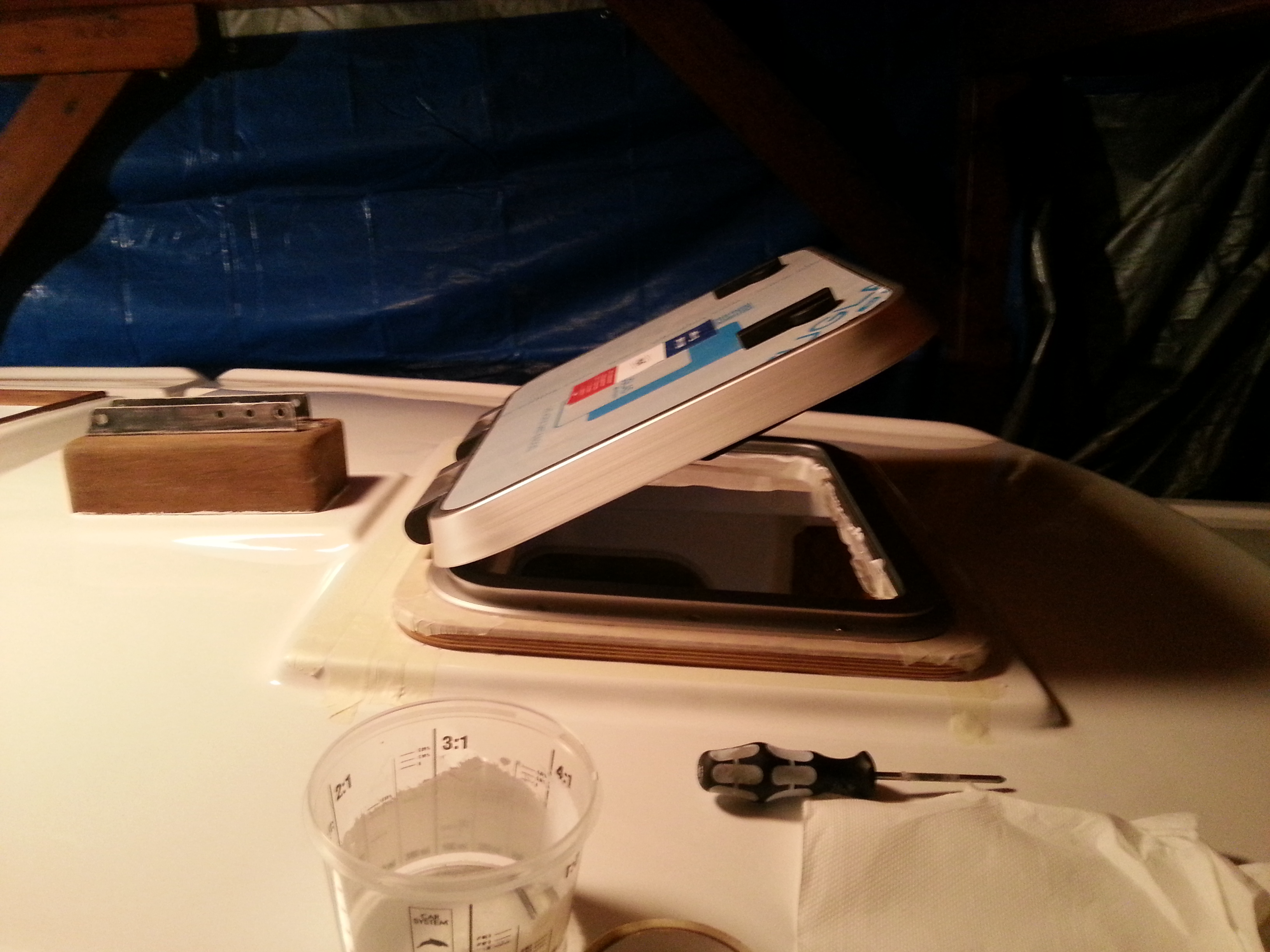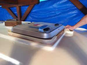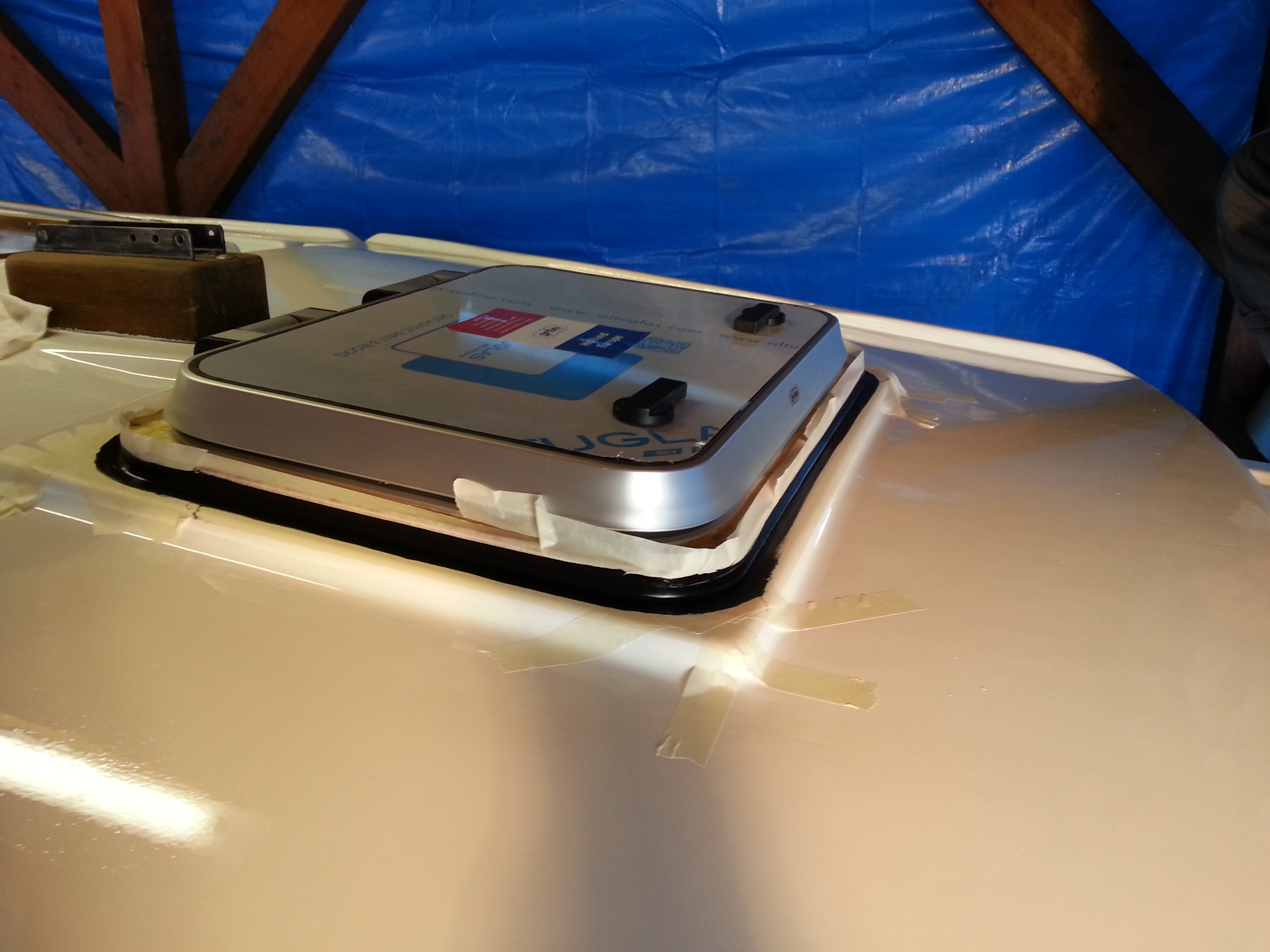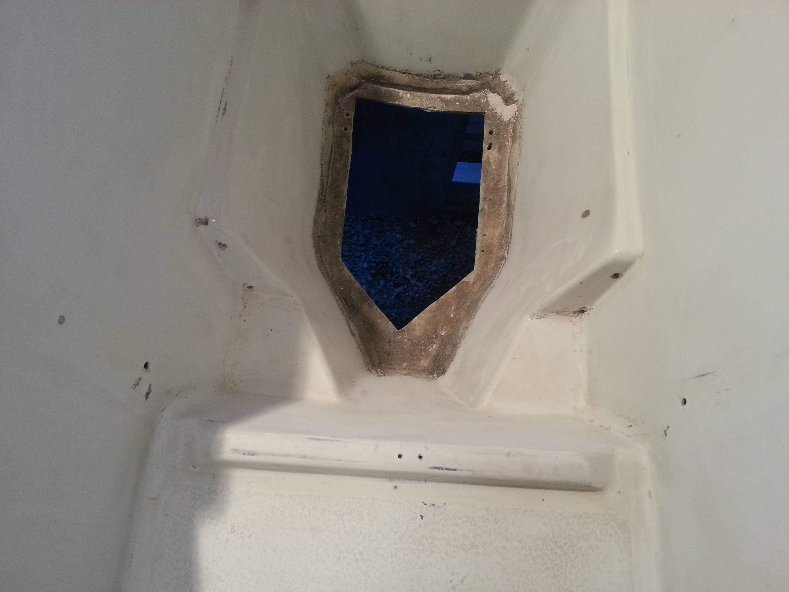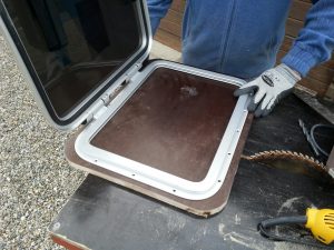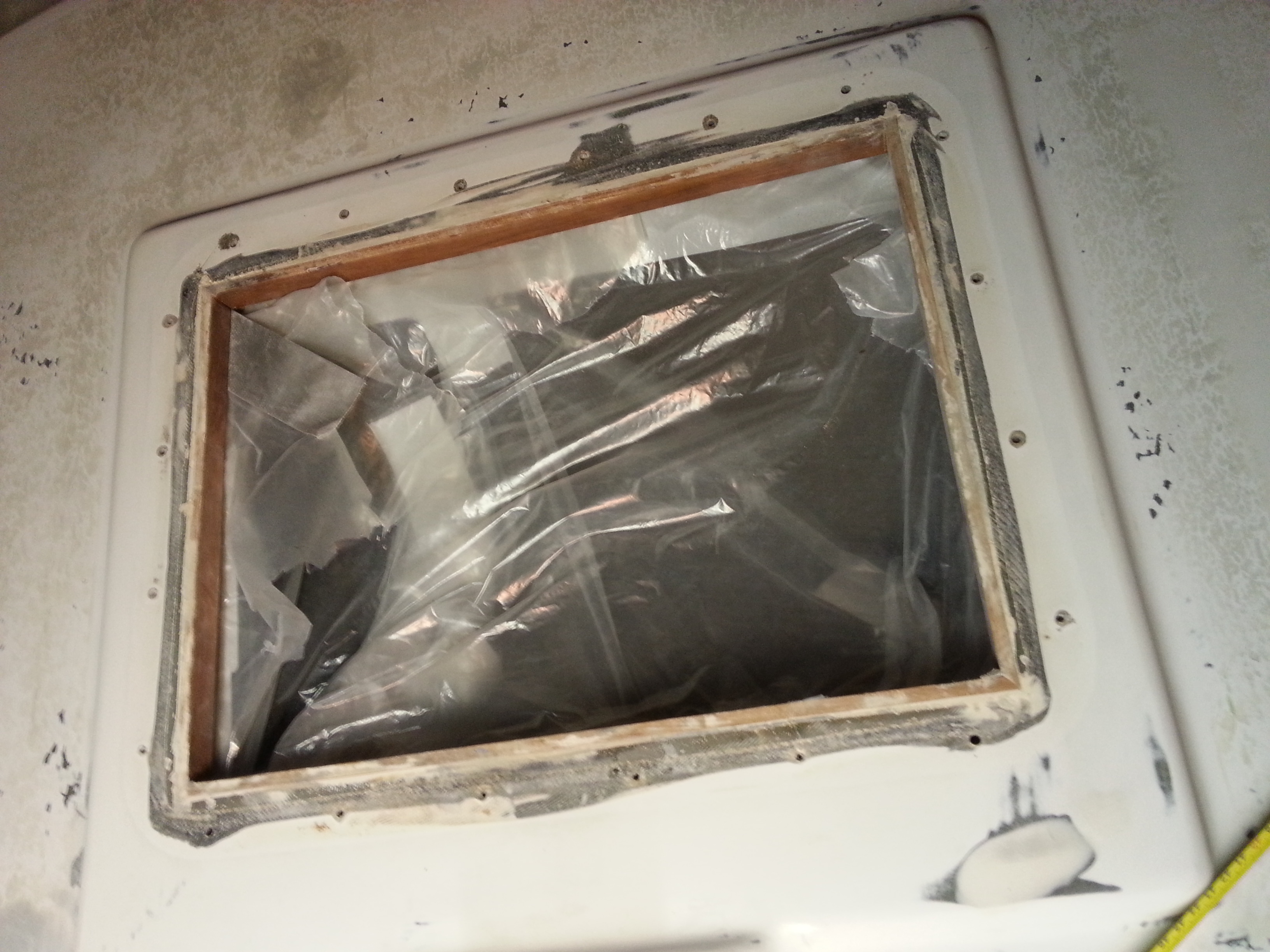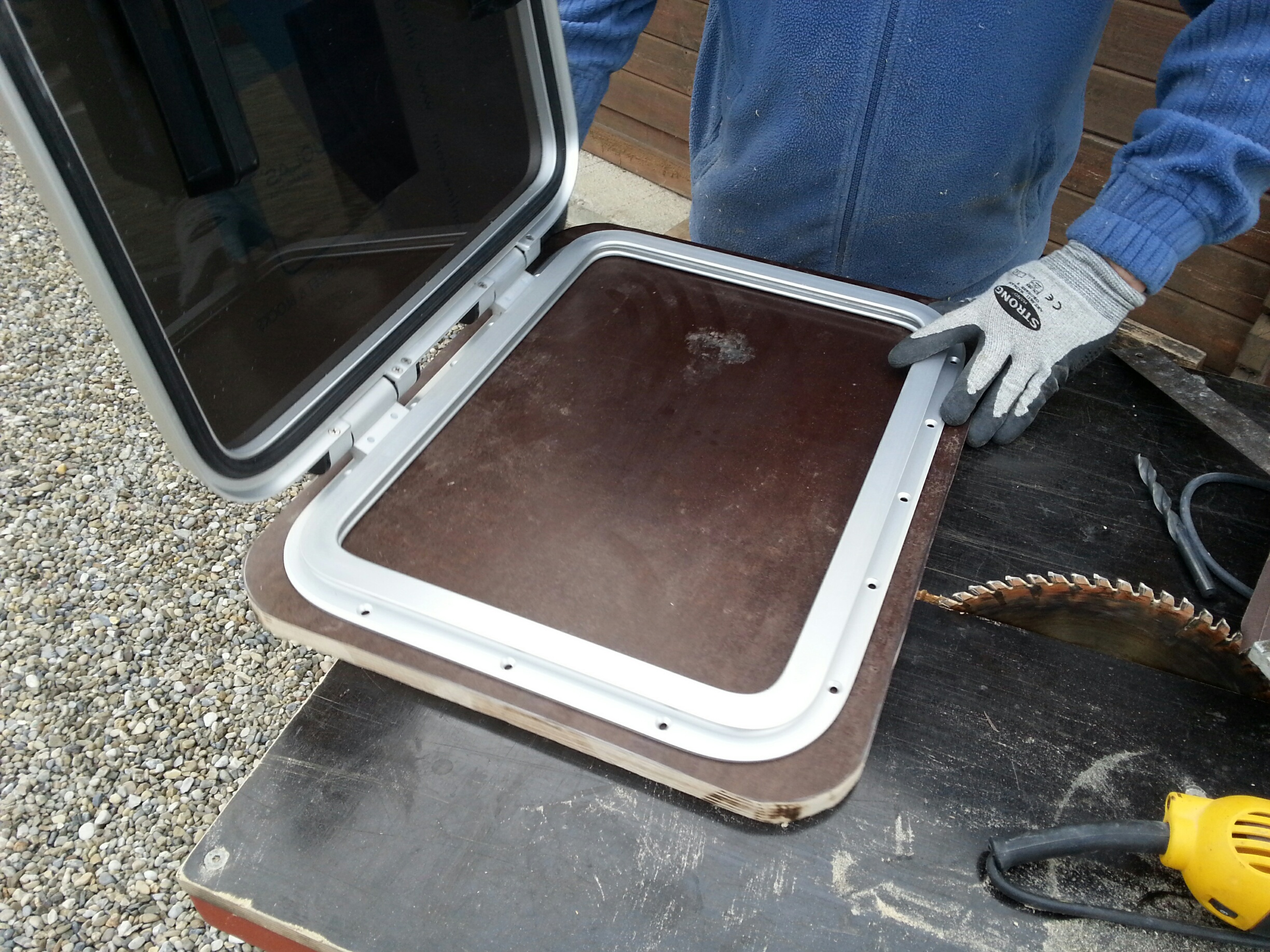 Die Ernüchterung kam aber relativ schnell, beim anlegen der Decksluke. Das Innenmaß hat gepasst – das Außenmaß leider gar nicht. Mit aufgelegter Decksluke waren die alten Schraublöcher rundherum sichtbar, weil die alte Luke von den Außenmaßen deutlich größer gewesen ist.