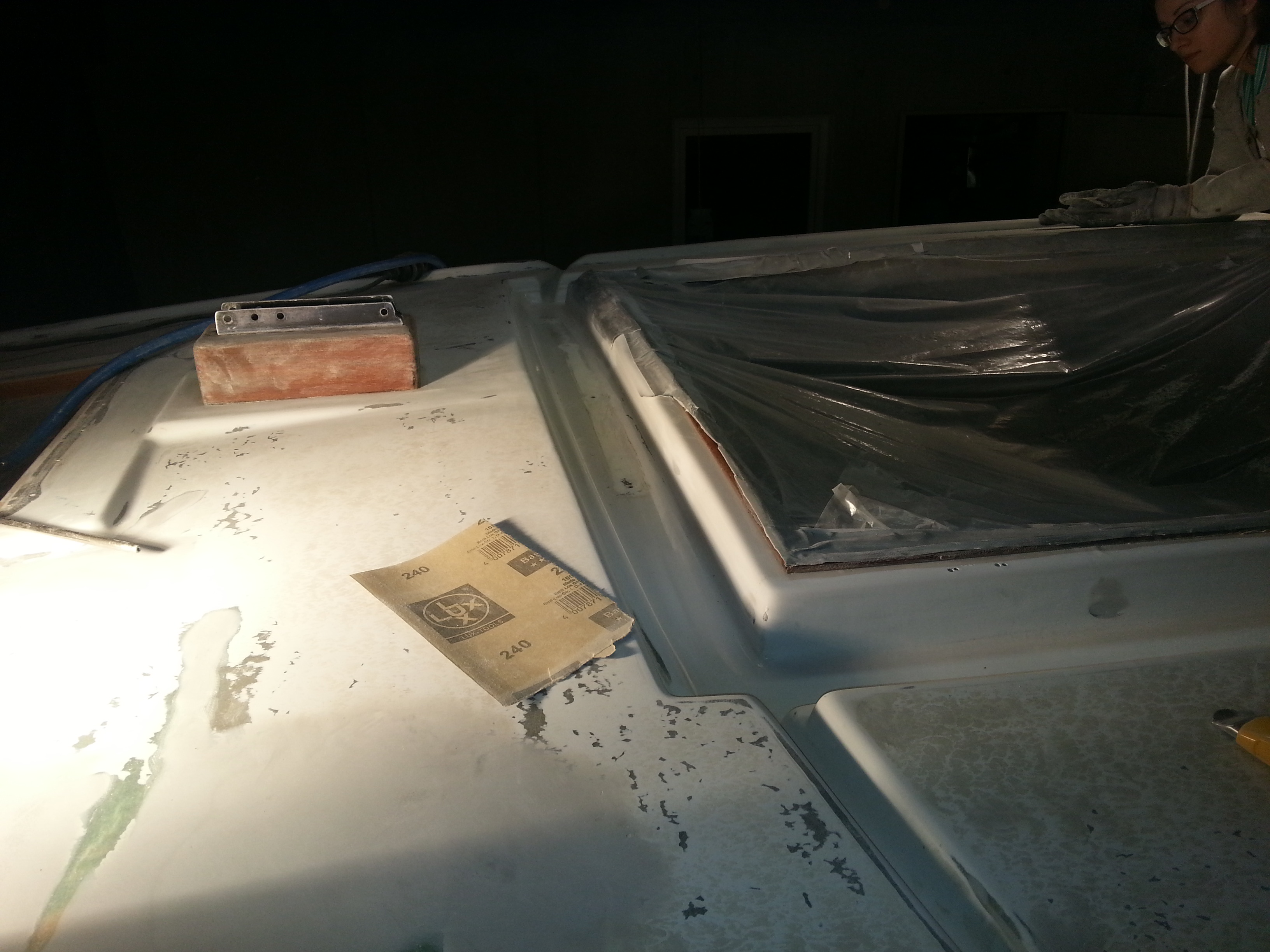 13.09.2016, 18:15 – 21:30, 2h45min: Schadstellen schleifen + Motorschachtdeckel