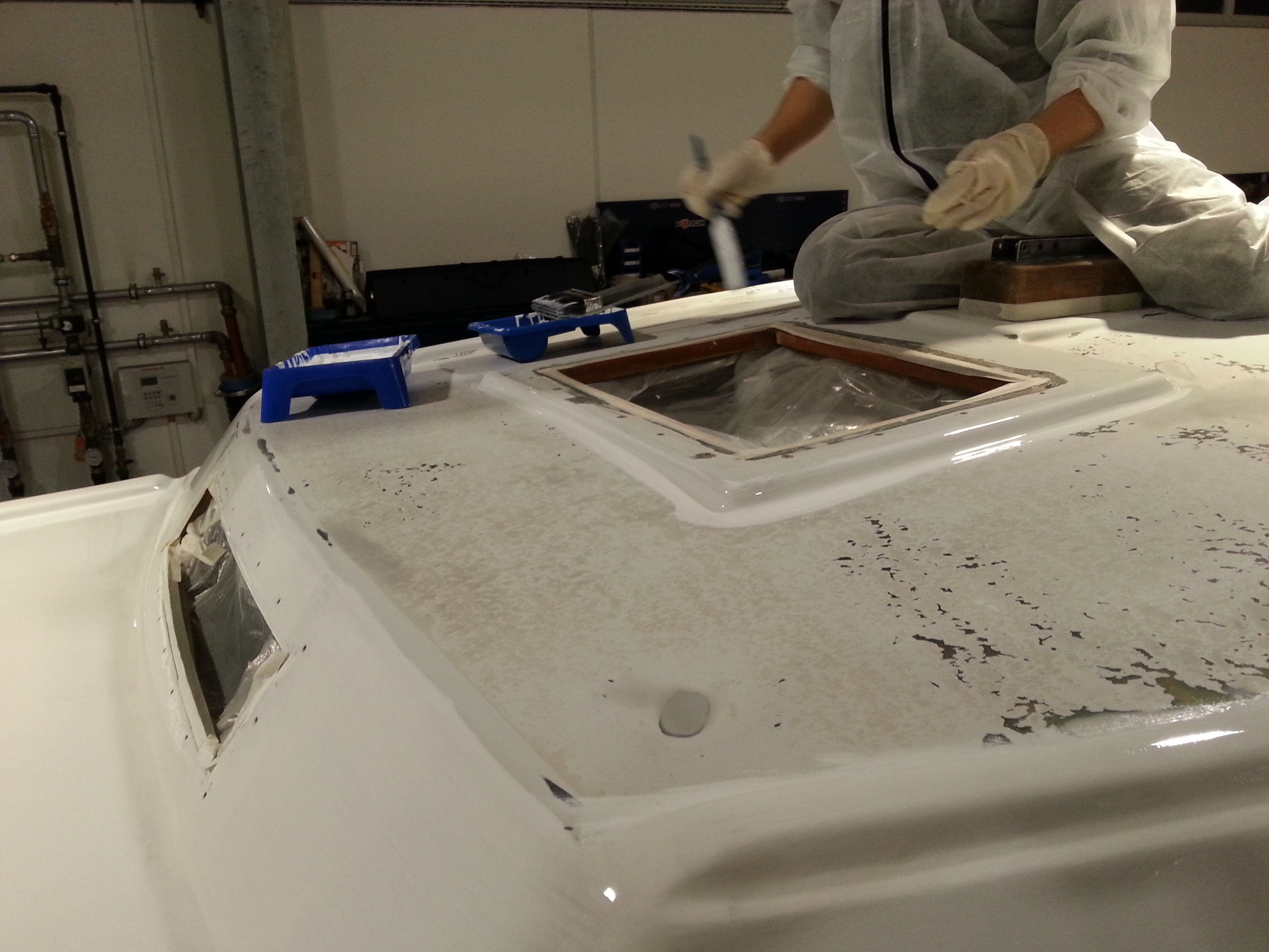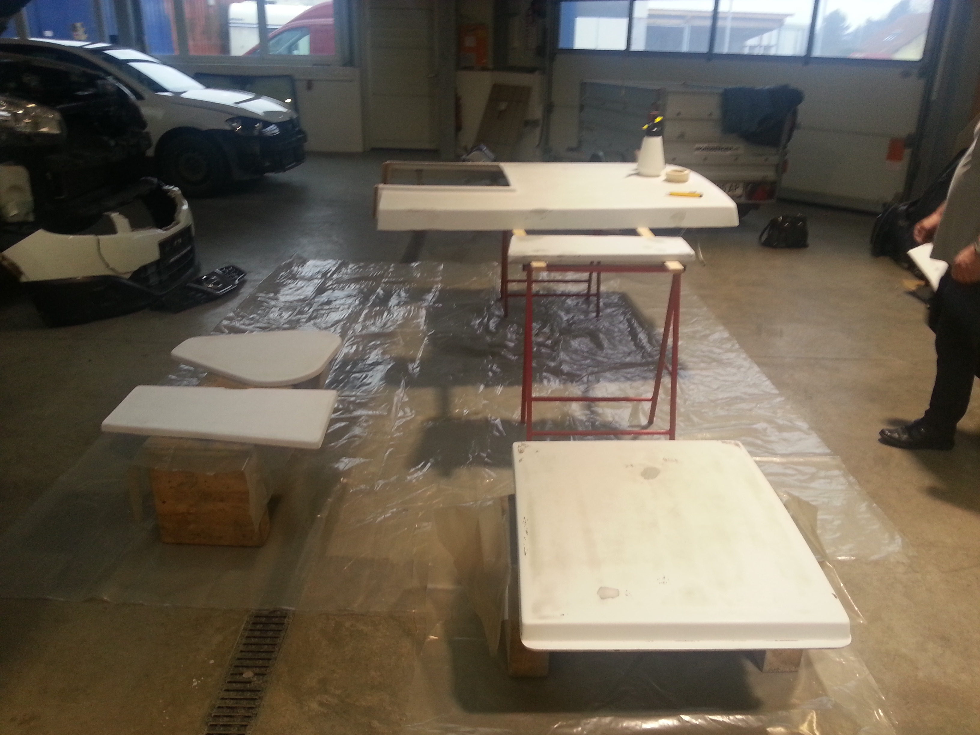 Dieser Teil ist einer der wichtigsten da hier das Ergebnis entscheidend ist für den ersten Voranstrich. Das Oberdeck muss an allen ausgebesserten Stellen spiegelglatt sein.