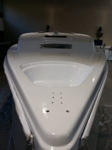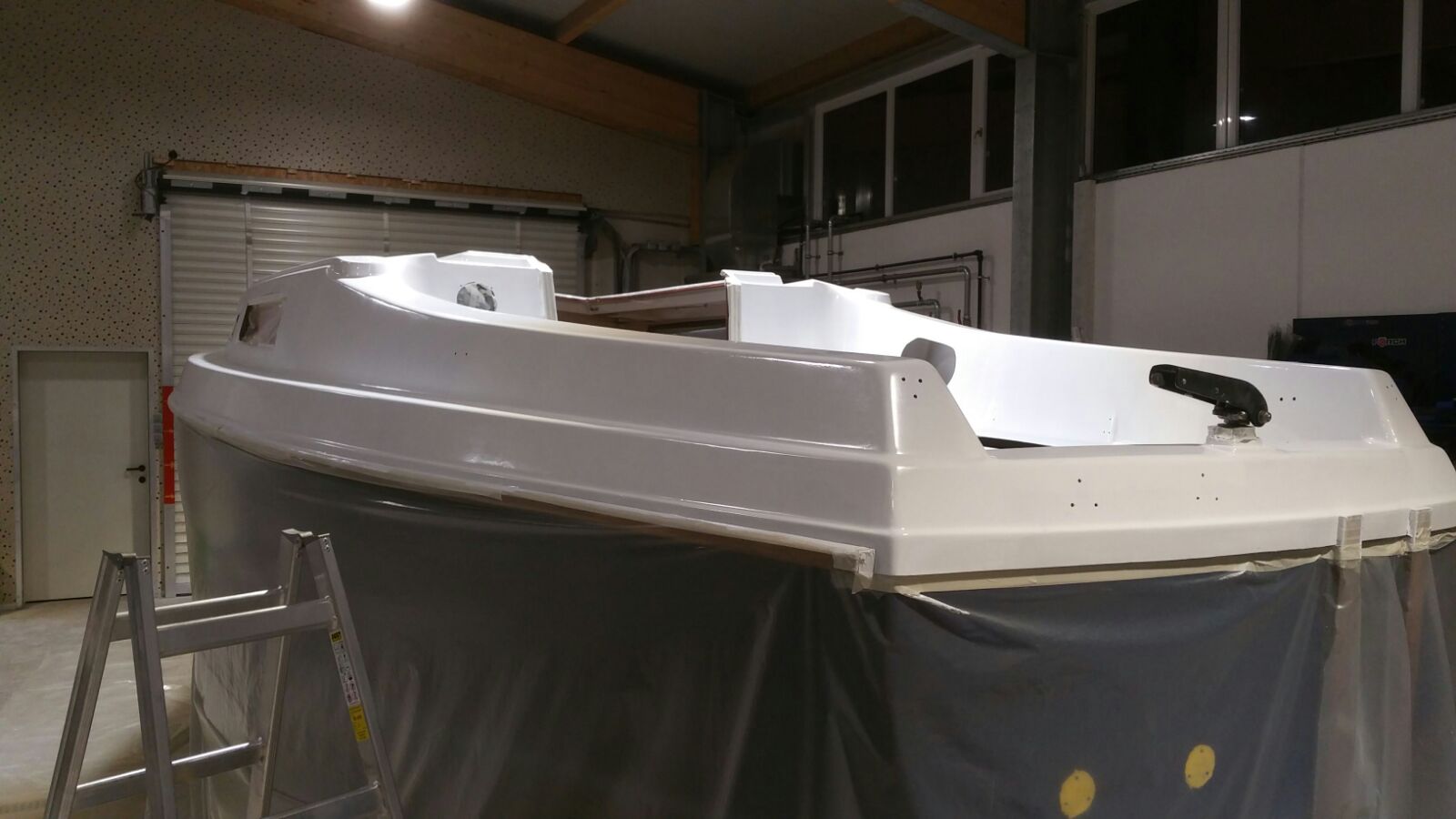 Die nächsten Schritte sind “Spachteln”, der Handschliff von Rundungen, Ecken, Kanten und der Rest vom Motorschacht. Dann wird der restliche/fehlende Teil gespachtelt und am Ende noch einmal erneut geschliffen und nachgespachtelt.