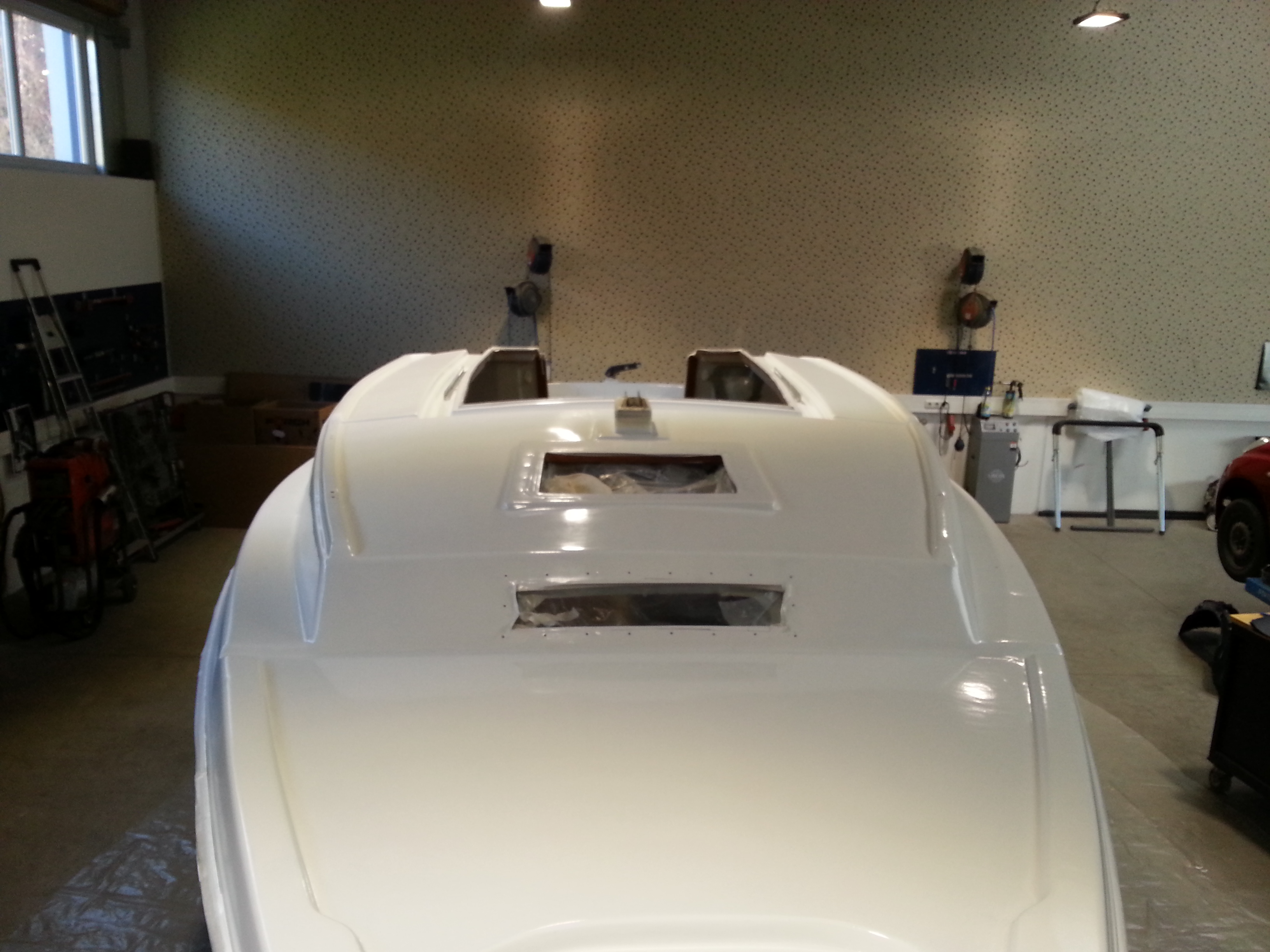 Fenster-Dichtungen vollständig entfernt, vorderes Fenster ausgebucht und Dichtungen entfernt, Motorschachtdeckel weiter gebaut, Peter Besichtigung GFK Refit + Testschliff, Motorschachtkisten-Plexi geschliffen und Kiste geschliffen