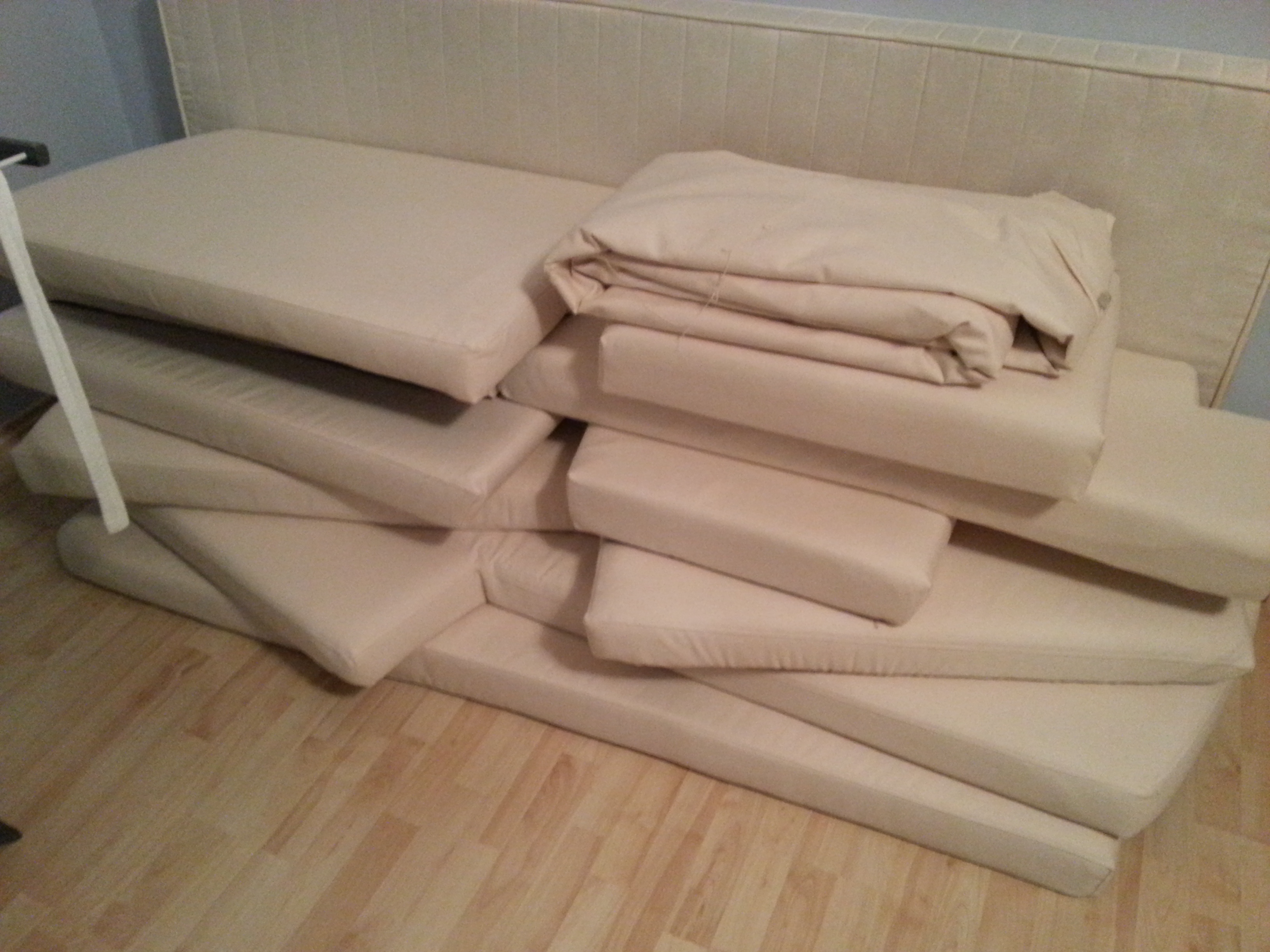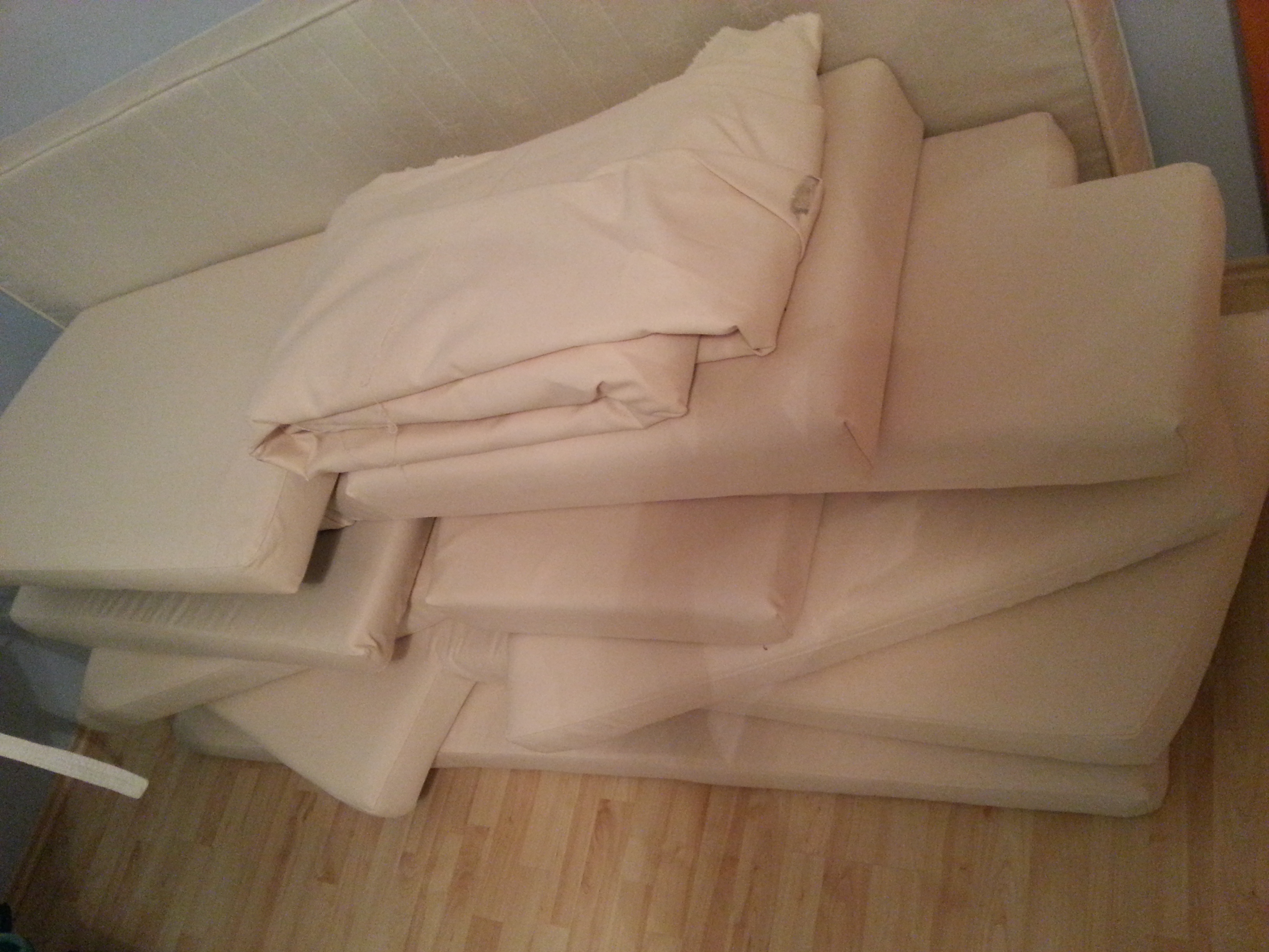 Er hat sie bei einer Schneiderin, mit den selben Stoff, neu schneidern und beziehen lassen mit neuem Zip-Verschluss. Fotos folgen!