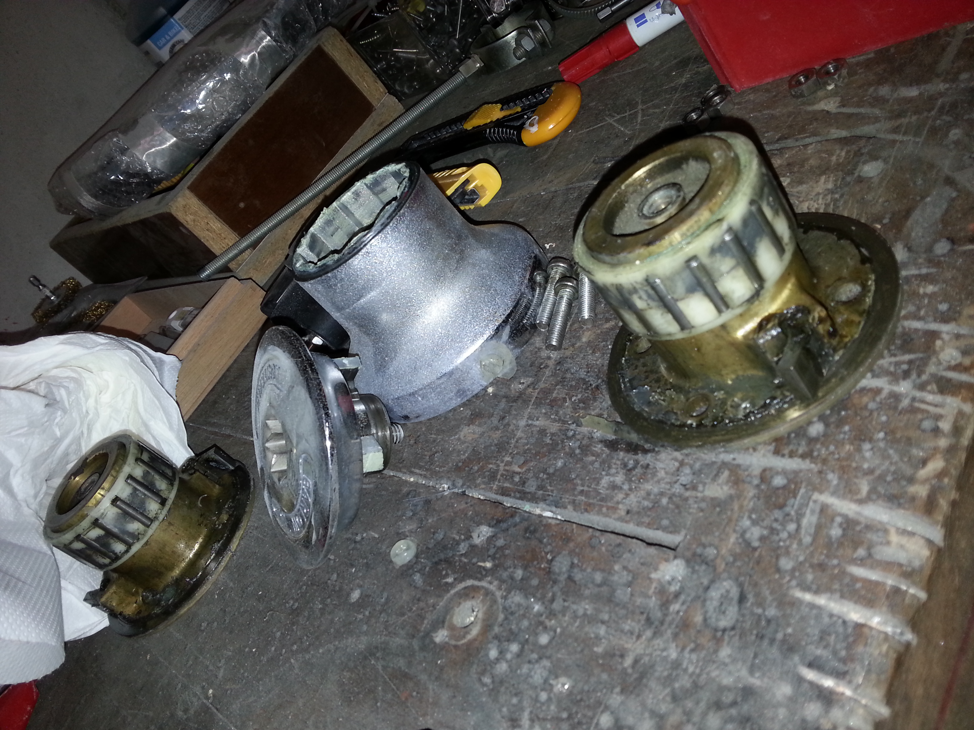 Wir haben diese maximal zerlegt, entfettet und neu gefettet – dabei ist mir aufgefallen dass bei einer Sperrklinke eine Feder fehlt (Deckel oben). Mach nicht arg viel,