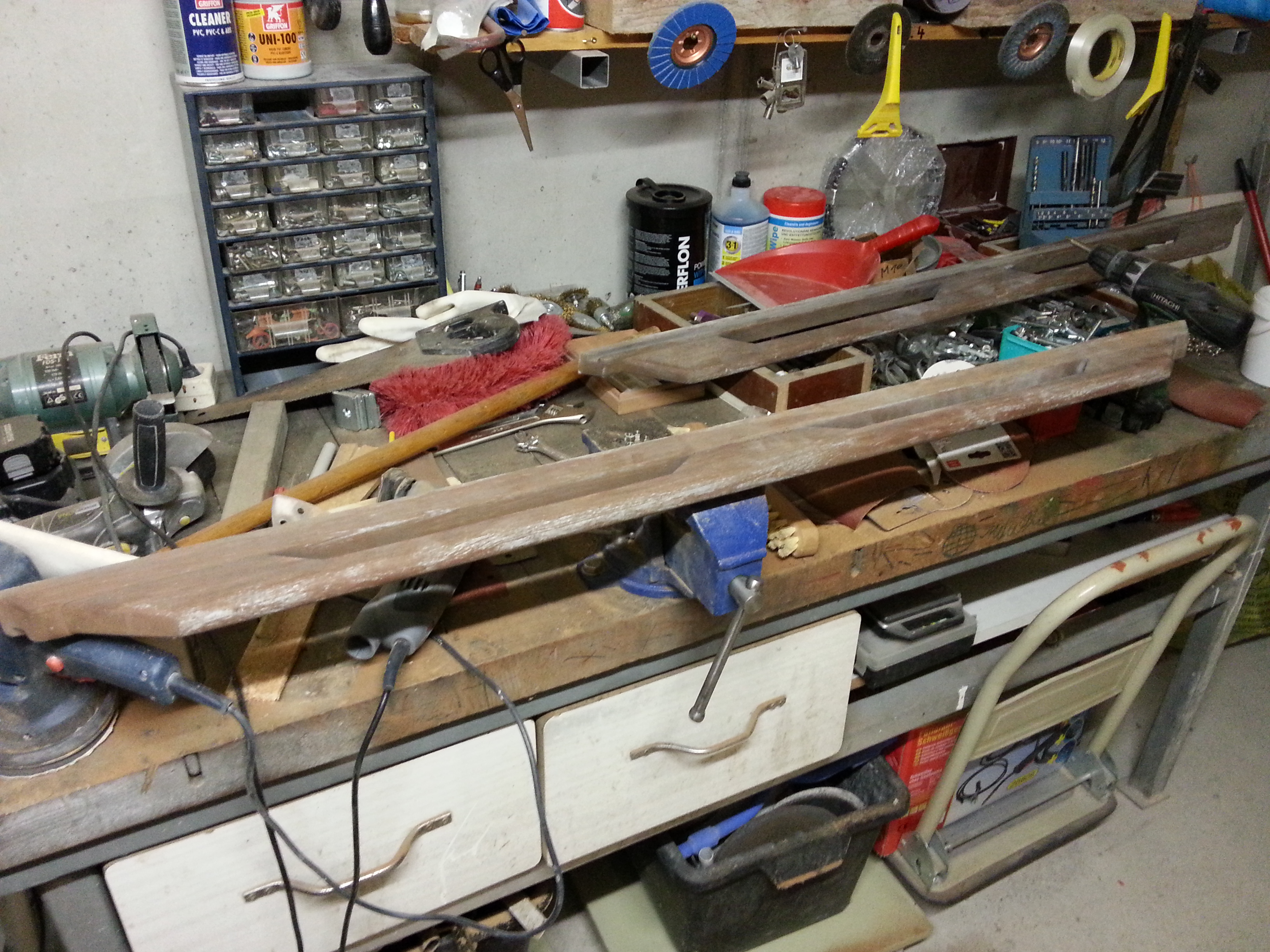 Weitere Erkenntnisse: diese Alu Schienen und die Holz-Motorhalterung müssen weg… sonst ist das weitere Schleifen dort einfach zu mühsam.