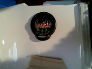 Es hat 10° und man kann sich wider mit Pullover im Freien aufhalten – gefällt mir. Nun – der Kompass hat, trotz Nervosität und Unsicherheit, wirklich perfekt gepasst. Das Loch war schon vom Vorbesitzer ausgeschnitten. Ich musste das Ding tatsächlich wirklich nurmehr anschrauben – wunderbar. So darf jede Arbeit sein 🙂