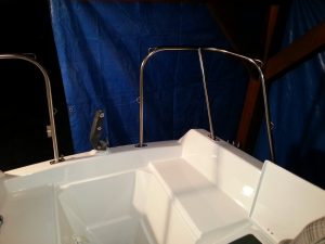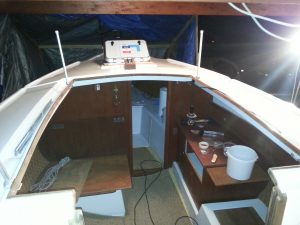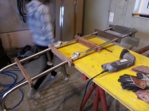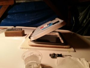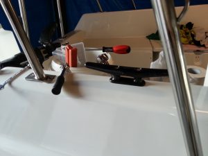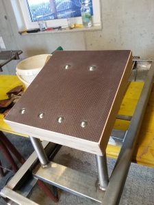 Schwiegervater war fleissig und hat früh morgens schon Zeit gespart und für den Einhand-Umbau einen Edelstahl-Rahmen für den Mastfuss geschweist. Dort können dann die Blöcke montiert werden. Wo genau wissen wir erst wenn wir den Mast gestellt haben. Außerdem haben wir 2x Clamceats montiert, die vorderen Klampen und dann haben wir uns an die Fenster gemacht! Ist “relativ” gut gegangen – einiges sehr gut, 1-2 Fehler sind passiert die ich im Fenster-Refit genauer für euch behandle. Im Motorraum wurden dann, vorübergehend, die vorhandenen Löcher zugedichtet – weil der Refit der Hölzer dafür noch länger dauernd wird. Das selbe gilt für die Motorhaubenabdeckung.