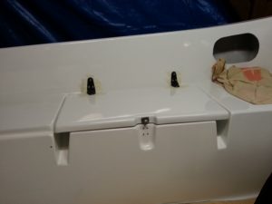 Die Backskistendeckel waren da schon umfangreicher. Wir mussten die Scharniere ordentlich abkleben damit herausquellendes Sikaflex nicht unnötig viel Mist verursacht.