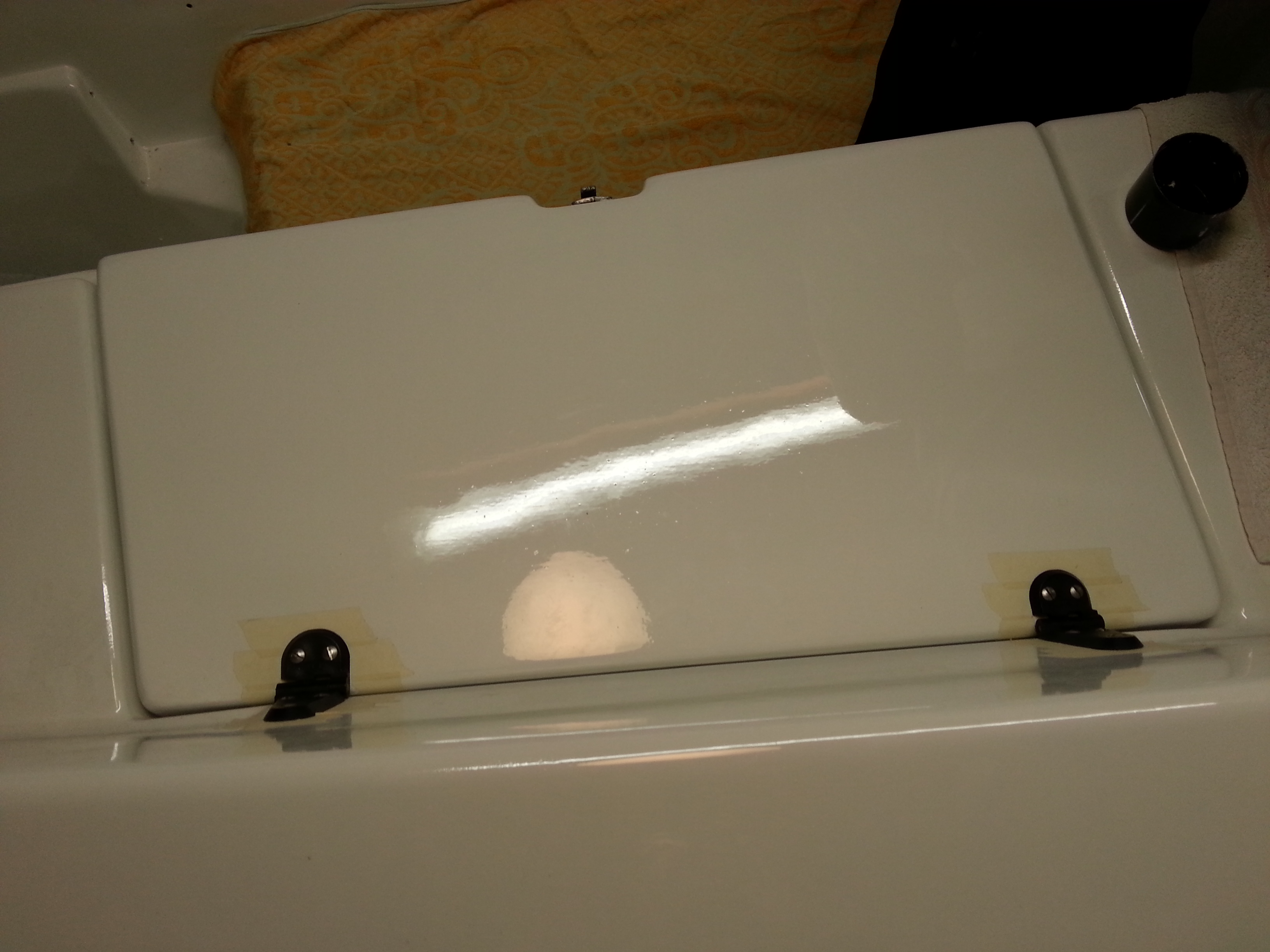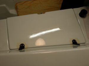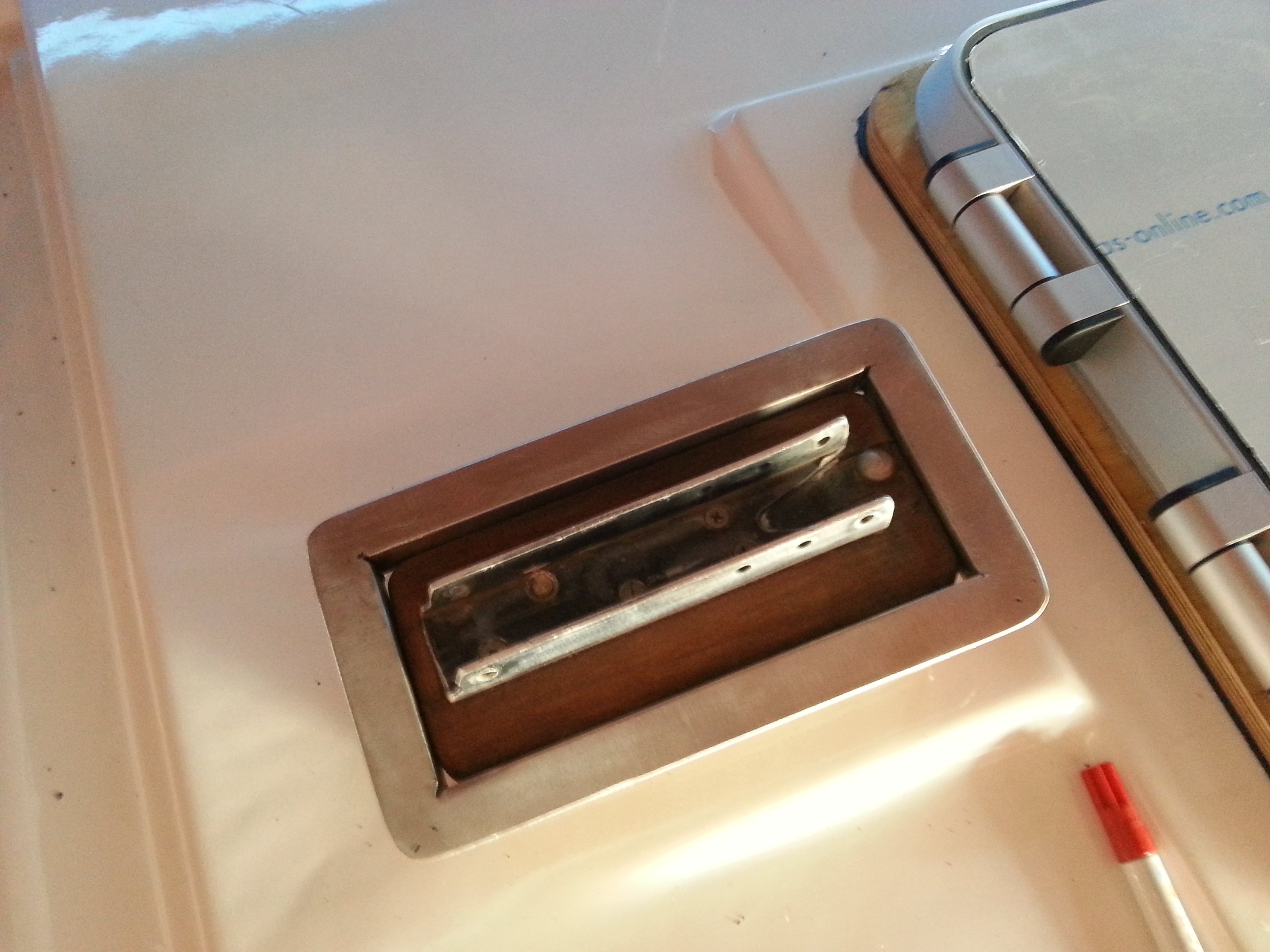 An diesem Samstag haben wir deshalb so einiges geschafft. Unter anderem konnten wir den Ankerkastendeckel montieren – das war super leicht. 2 Scharniere, Sikflex 291i und eine Nietenzange mit Nieten und das Ding war in <10min montiert. Wenn nur alles so leicht wäre…