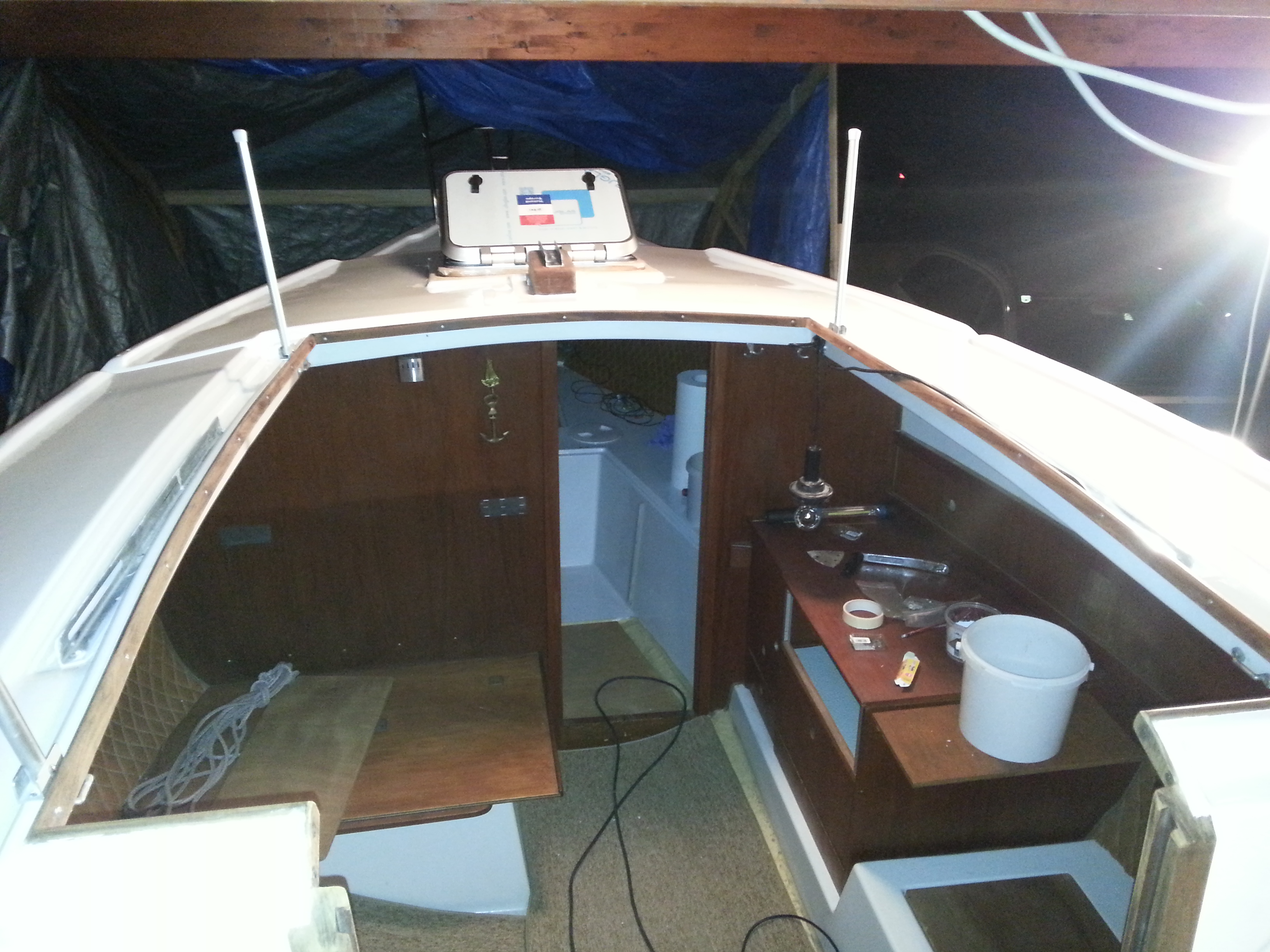 Anker aus dem Ankerkasten geholt, geschliffen und neu lackiert > siehe Anker Refit