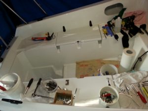 Vor weiteren Schleifarbeiten habe ich den Ankerkasten gründlich reinigen müssen – das hatte ich wohl vergessen: