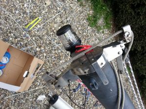 Das Ankerlicht musste montiert werden, das Kabel eingezogen, ein neues Grossfall musste hinein – und dann wurden alle Splinten und Verbindungen überprüft. Außerdem habe ich die Pinne, für einen Pinnenschutz (den ich selber nähe) ausgemessen. Die Maße dazu findet ihr auf den Fotos.